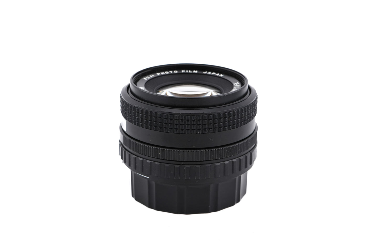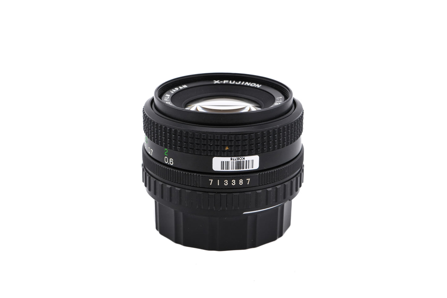 Manual focus normal lens made for Fujica X-mount 35mm SLR cameras introduced by Fujica. The lens will not mount on modern digital X-mount cameras. Metal and plastic body aivallbe in black.