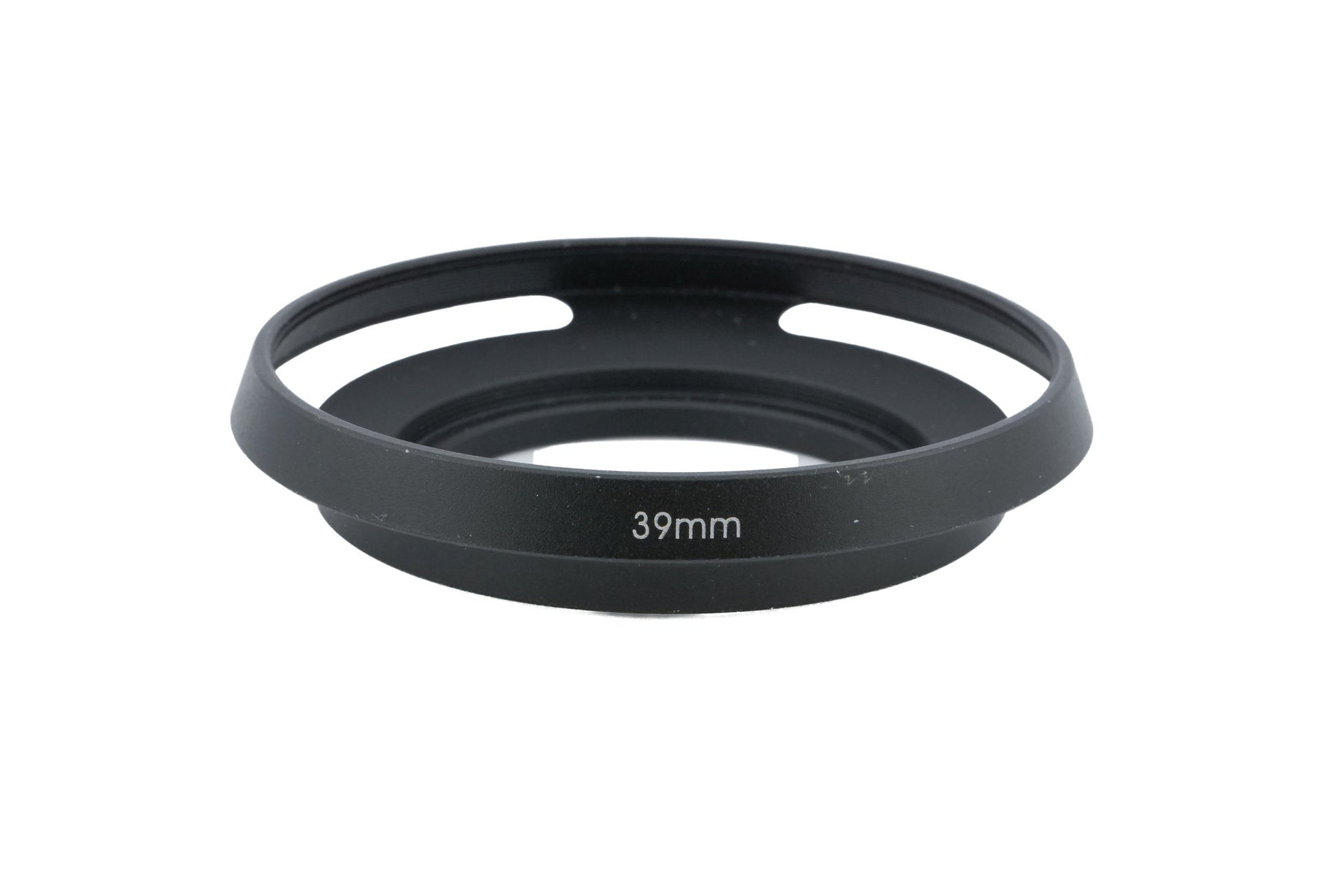 Vented metal lens hood for lenses with 39mm filter thread.