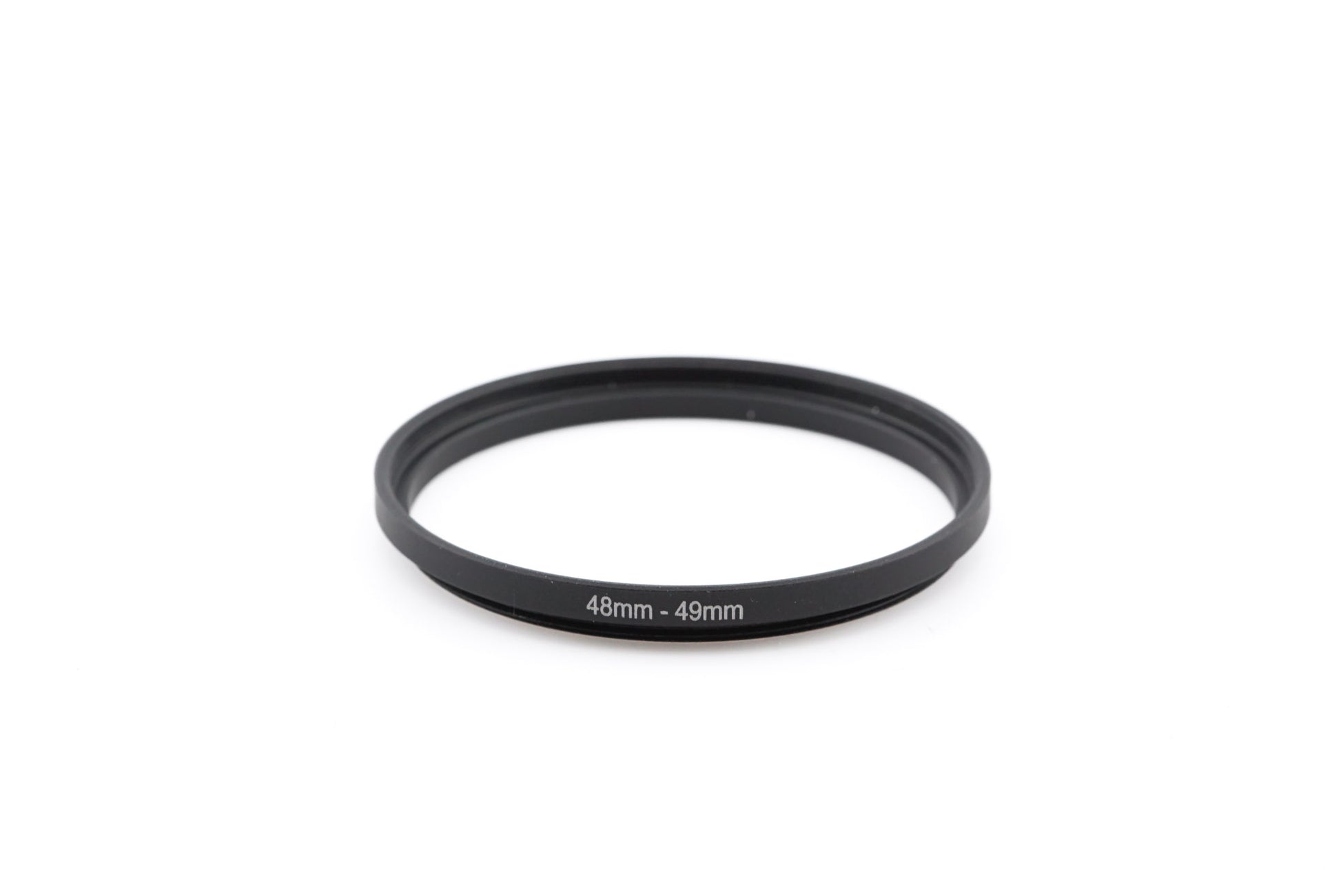 Step-up ring allowing 49mm accessories to be used on lenses with 48mm front filter threads. Metal body available in black.