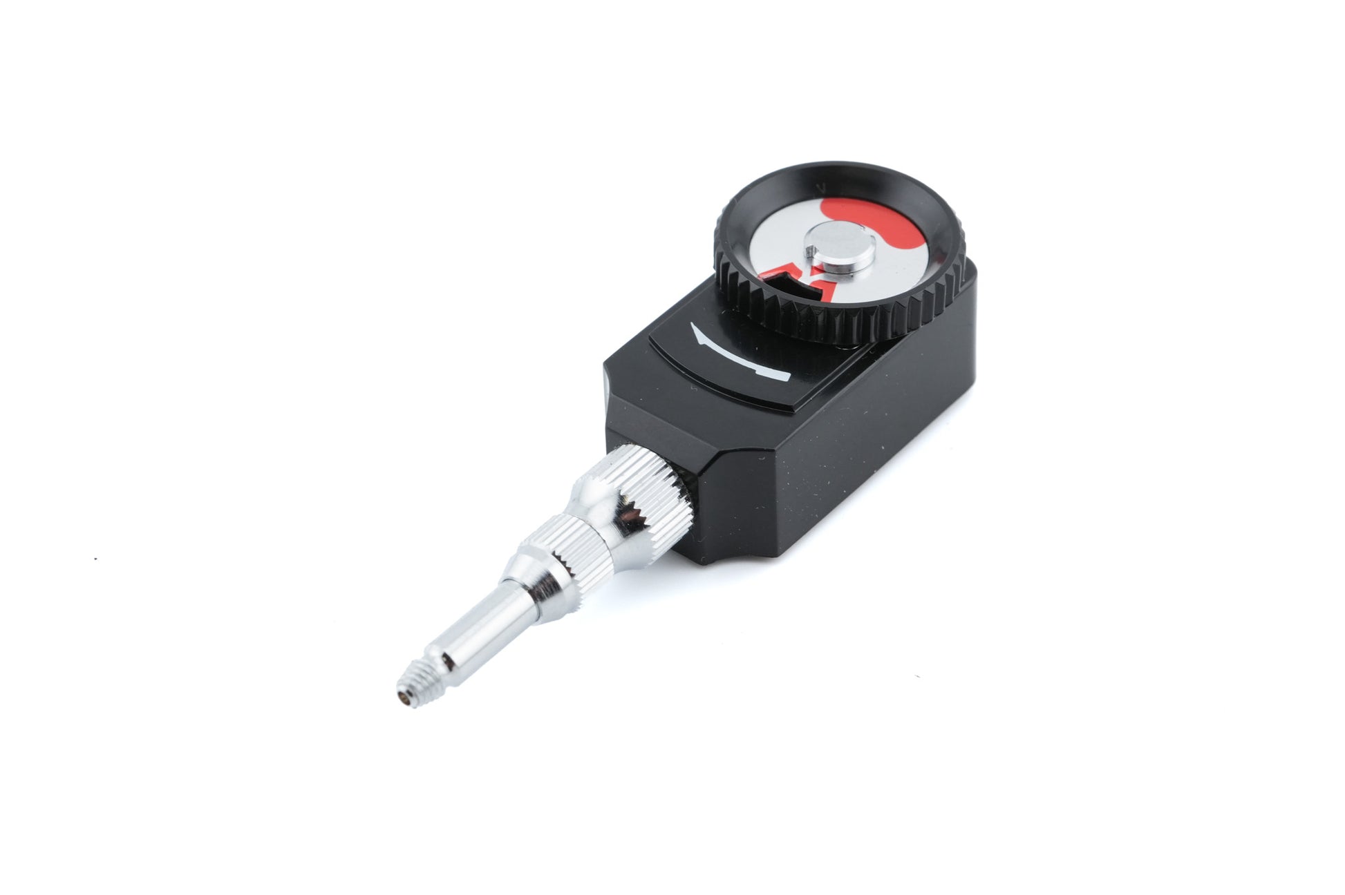 Self-timer that fits into standard shutter threads. Works by rotating the dial until the desired number of seconds appears on the small window. Metal body available in black and silver.