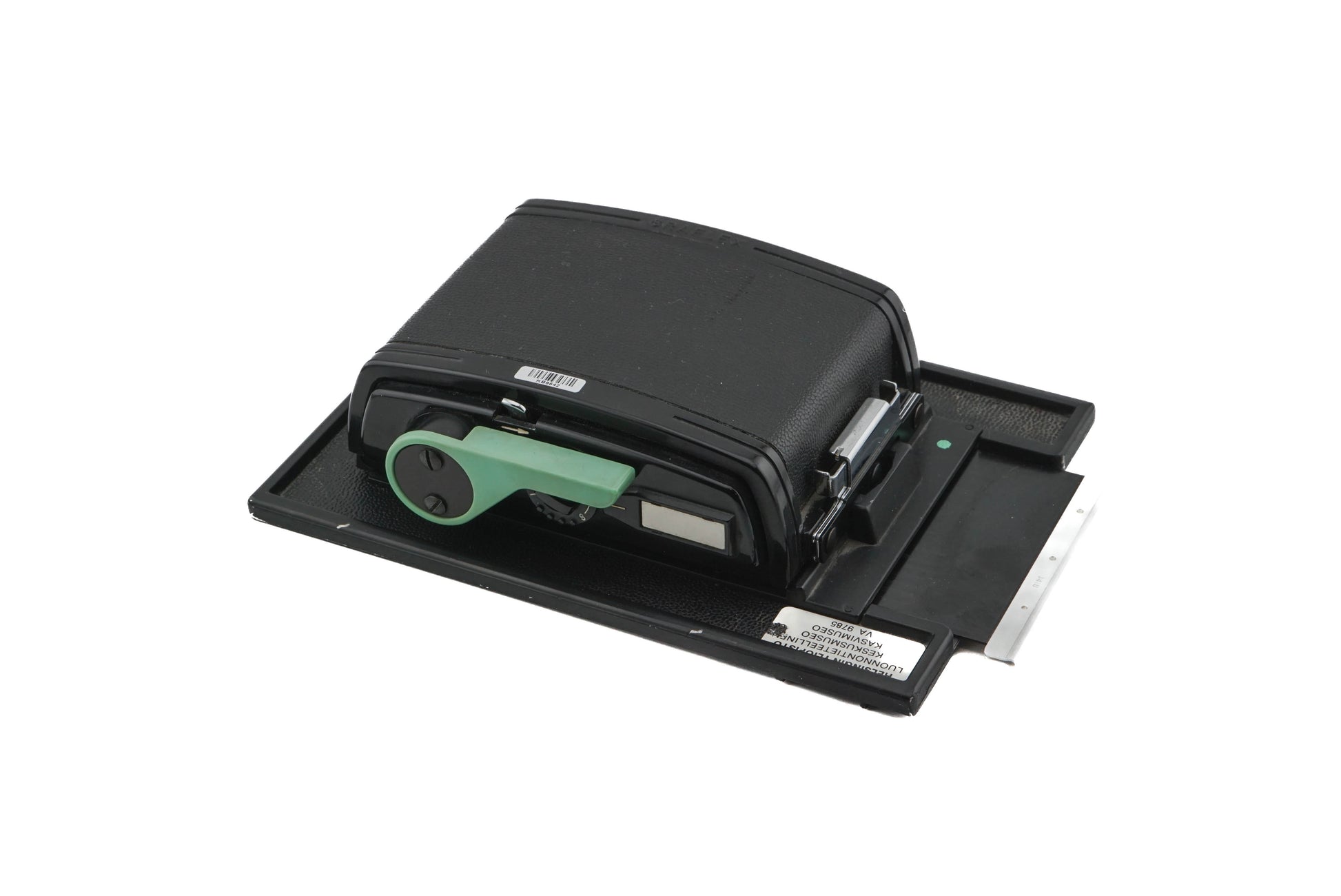Roll film back made by Graflex. Plastic and metal body available in black.