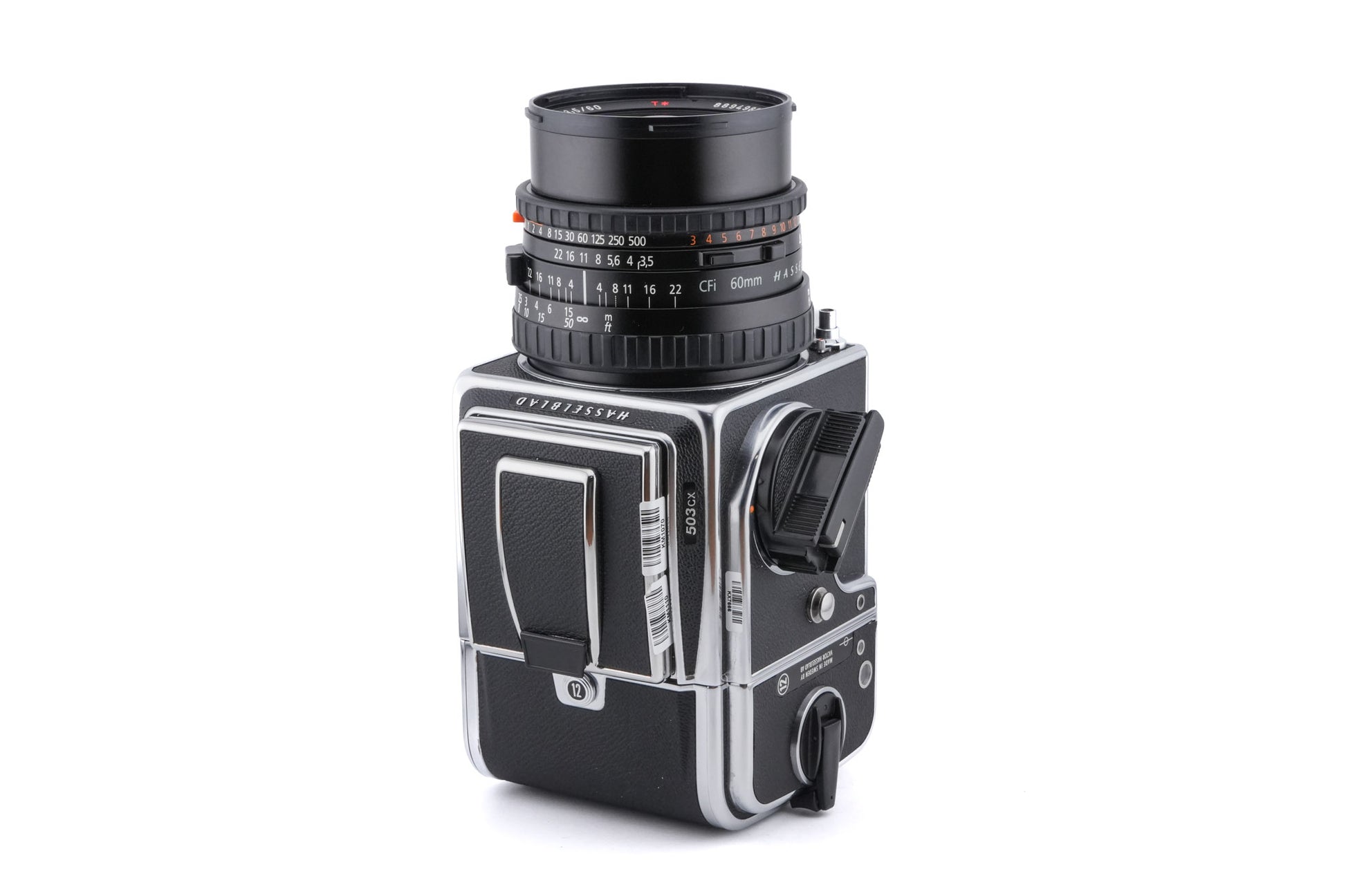 Hasselblad 503CX (Silver, 10026) + A12N Film Magazine + Waist Level Finder (New / Chrome, 42315) + Acute Matte D Standard Focusing Screen (42204) + 60mm f3.5 Distagon T* CFi