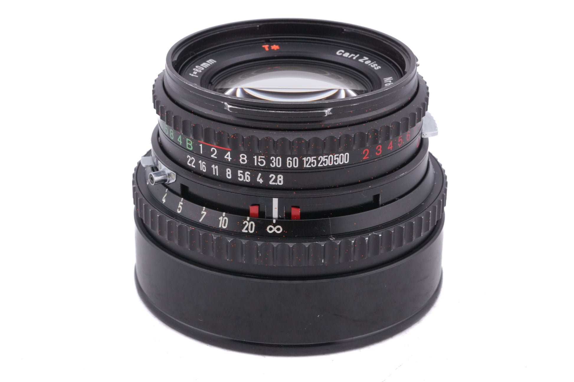 Manual focus normal lens made for V-system 120 SLR cameras by Hasselblad. This is the second "C"-version, which came with a black lens barrel and new T* coatings. A few transitional lenses were produced with T* coatings in a silver barrel. Metal body available in black (20028).