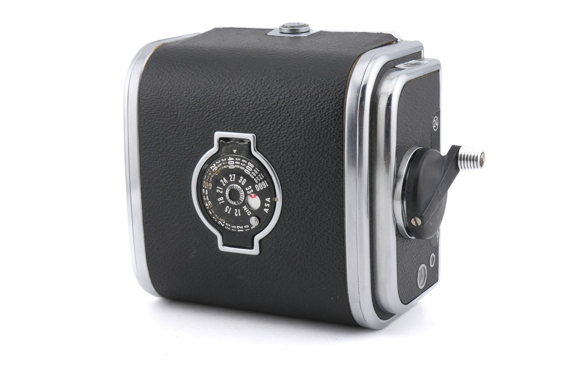 220 film back made for Hasselblad V series 120 SLR cameras introduced by Hasselblad. It takes 24 6x6cm images per roll of 220 film. It is externally very similar to a standard A12 back. Some models have the same upgraded features as the A12N. Metal body available in chrome.