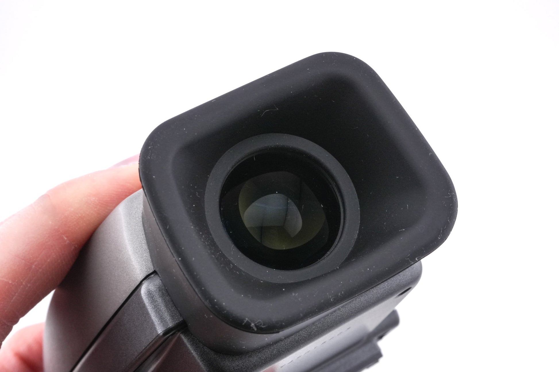 Eye-level viewfinder made for H series 120 SLRs by Hasselblad. It has 3.1x magnification and it offers 100% field of view, flash, built-in diopter adjustment, and dot matrix LCD for exposure and metering information. Metal and plastic body available in black.