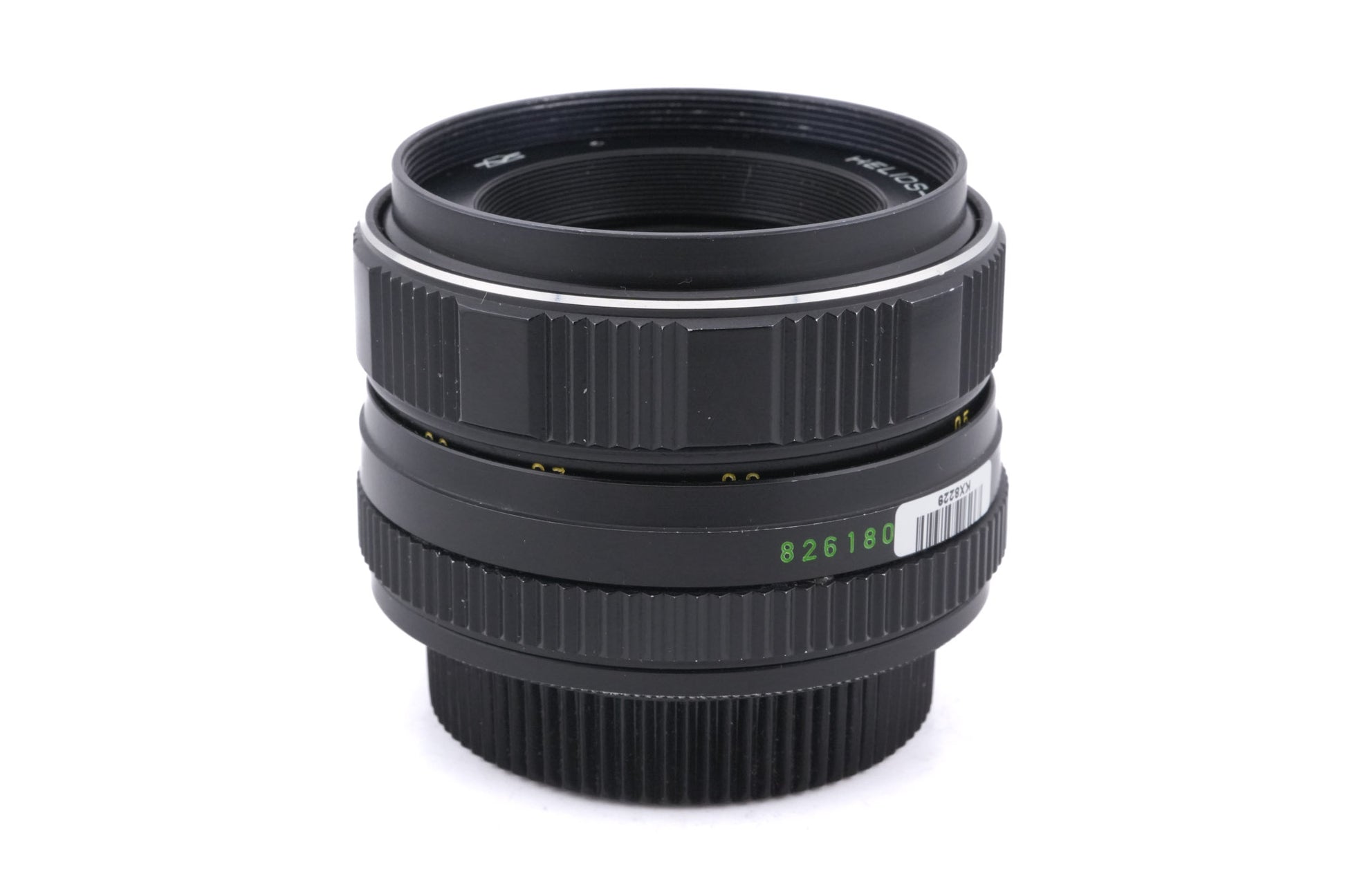 Manual focus normal lens made for M42 mount 35mm SLR cameras in the Soviet Union. Produced as the standard lens for many Soviet SLRs, including Zenits, and produced by many Soviet factories, including KMZ, Zenit, and Valdai. Based on the Carl Zeiss 58mm f2 Biotar. This version lacks an automatic/manual aperture switch. Metal body available in black.
