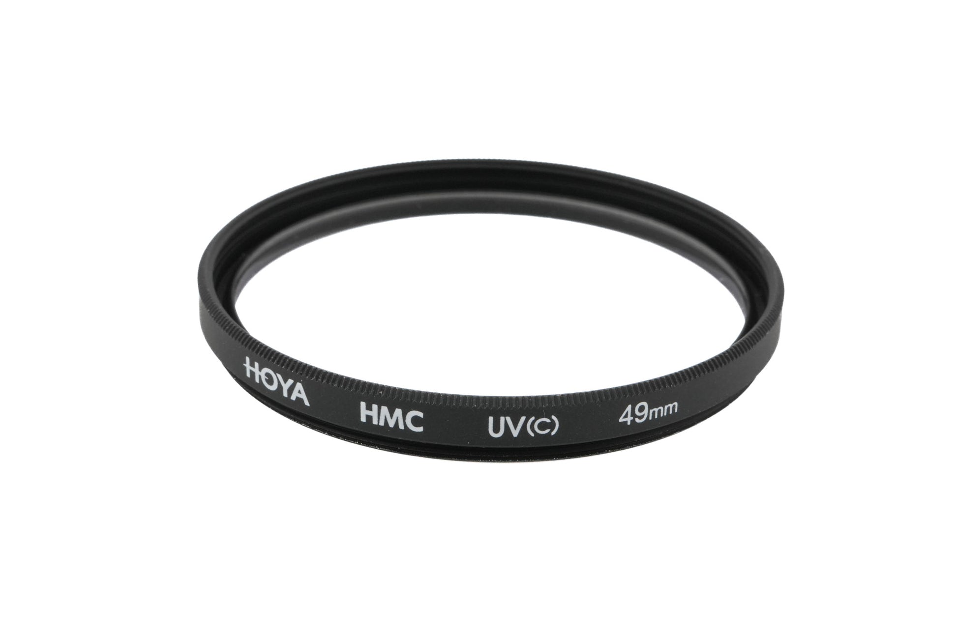Clear UV / protective filter from Hoya for lenses with 49mm filter threads. "C" design is slightly thinner than "O" design, otherwise identical. Black metal construction, with knurled edges.