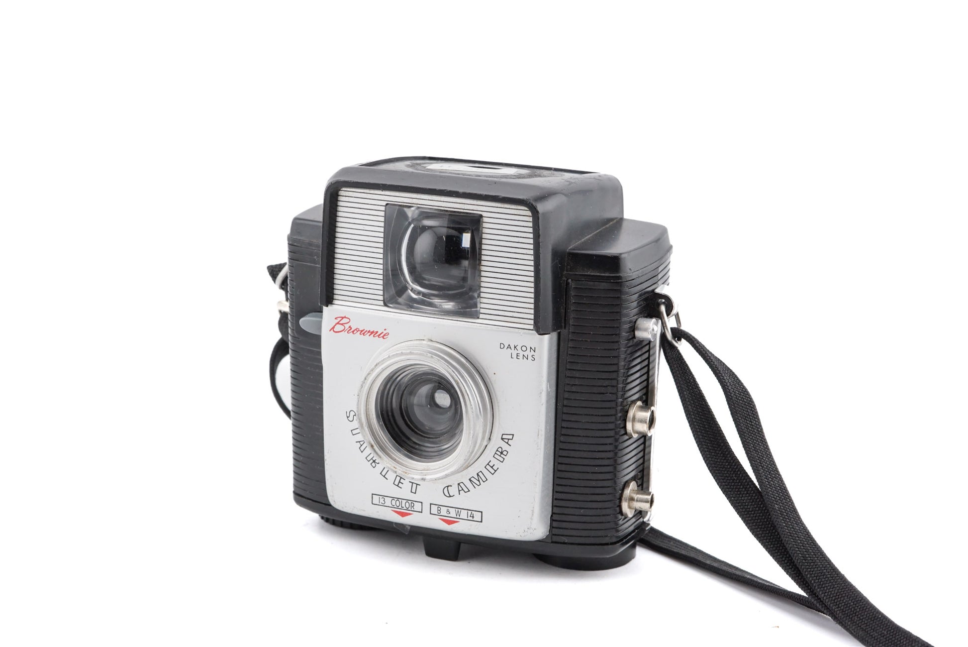 Fixed focus 127 roll film camera introduced by Kodak in 1957. It has one shutter speed and two aperture settings. Plastic body available in black.