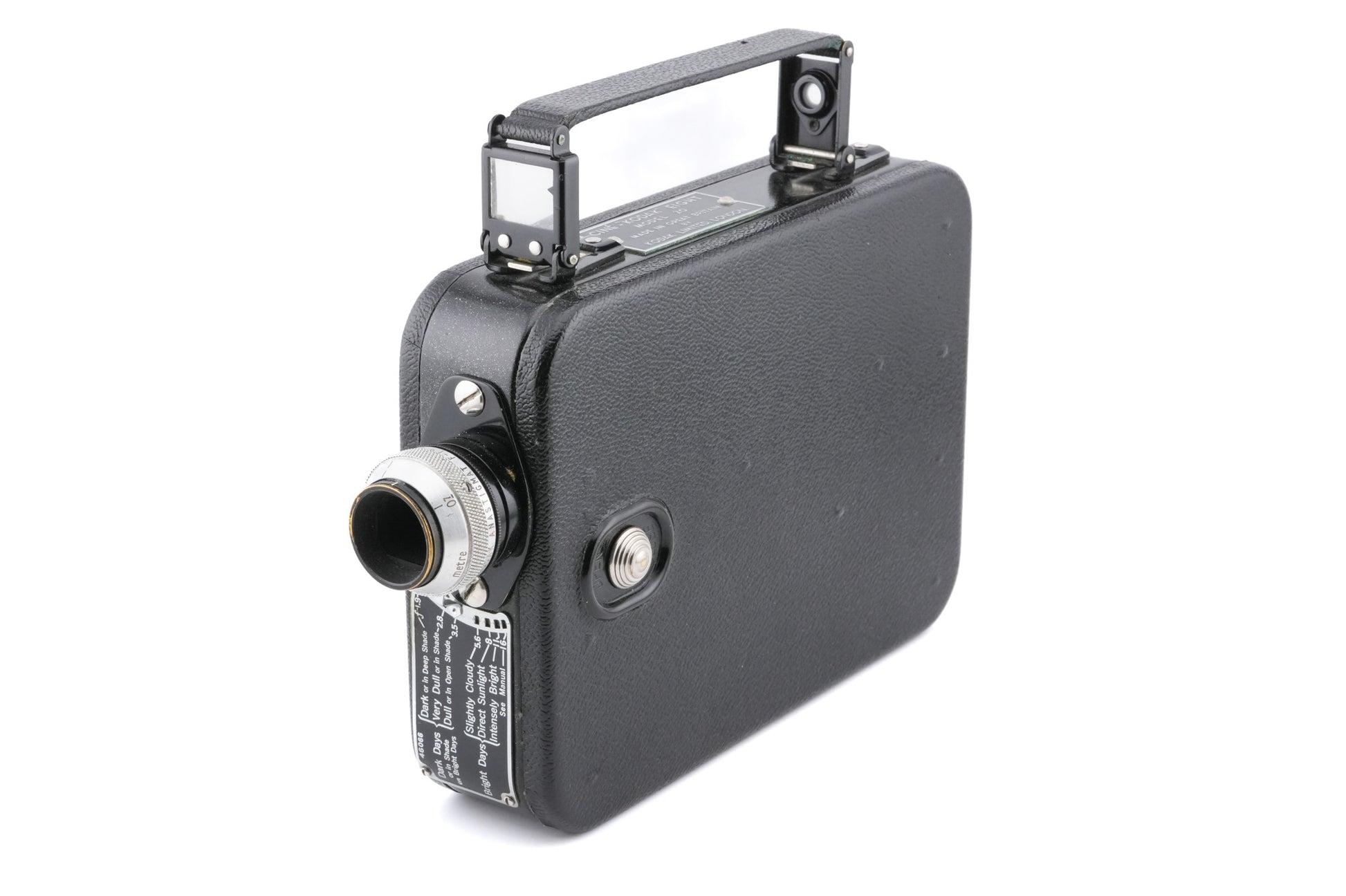 Manual focus 8mm movie camera made by Kodak. Metal body available in black.