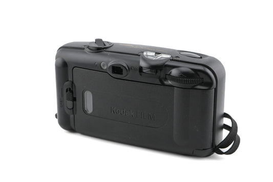 Fixed focus 35mm point-and-shoot camera made by Kodak. Plastic construction available in black.