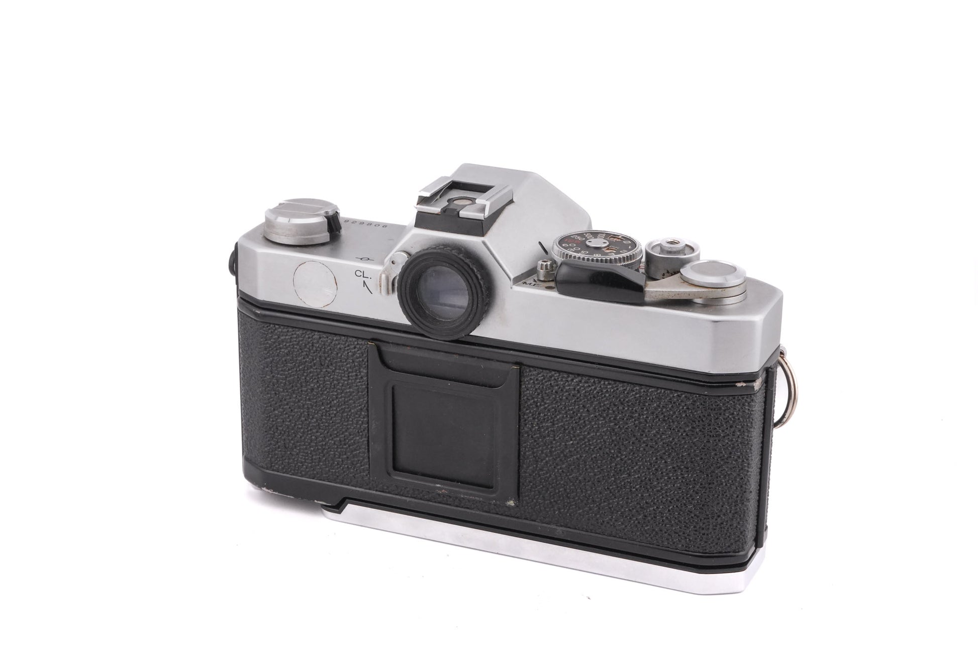 Manual focus AR mount 35mm SLR released by Konica in 1973. Has both shutter speed and aperture information visible in the viewfinder. Metal body available in black and silver grey.