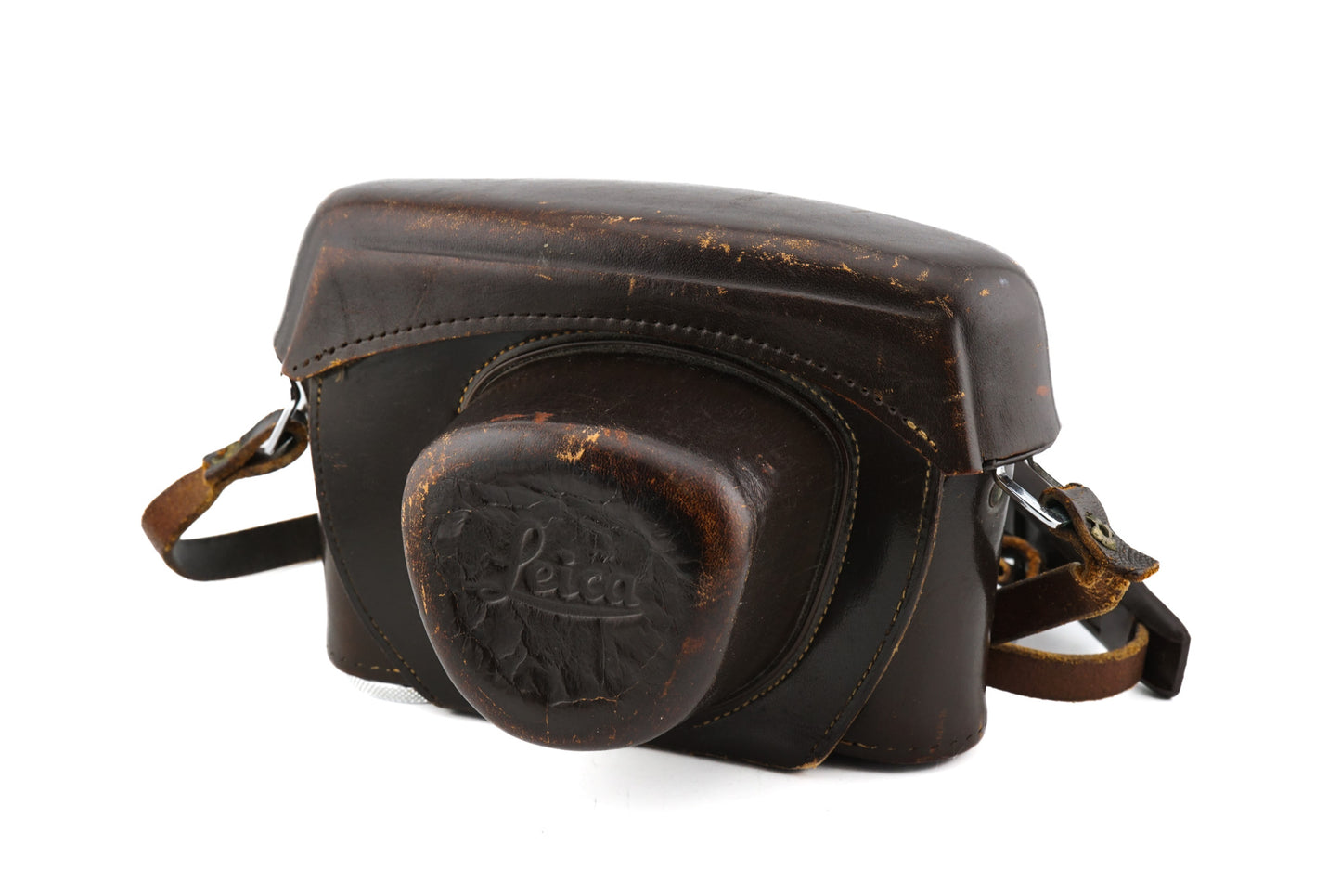 Leica leather case made for the M2 and M3 cameras introduced by Leica. It has a 3/8" screw and a small window on the back. Leather body available in brown.