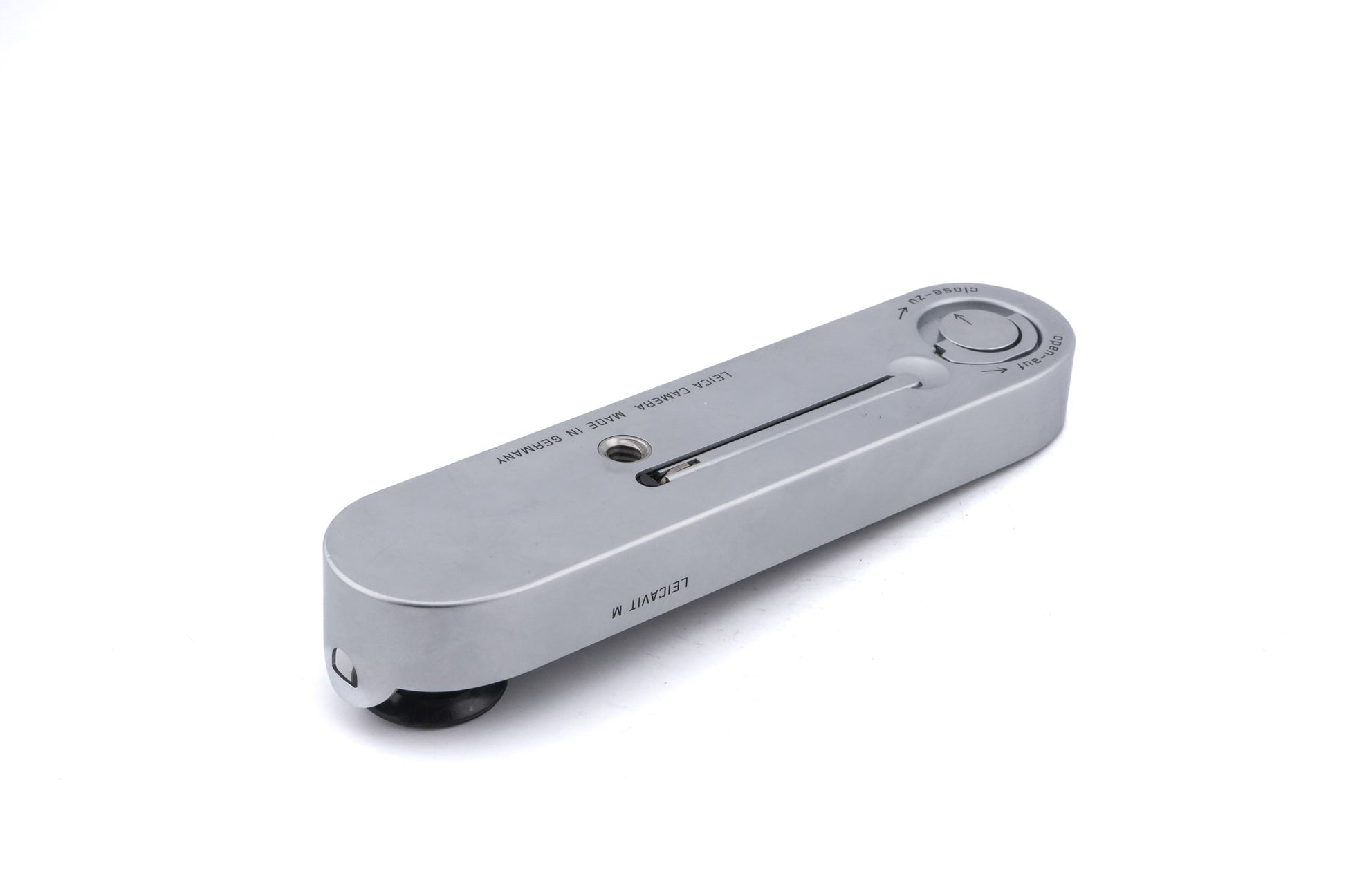 Film advance plate made for the Leica MP, M7, M6TTL, M6, M4-P, and M4-2 introduced by Leica. It attaches to the bottom of the camera and allows for quick advancement of the film via a lever on the bottom. Metal body available in silver (14008).
