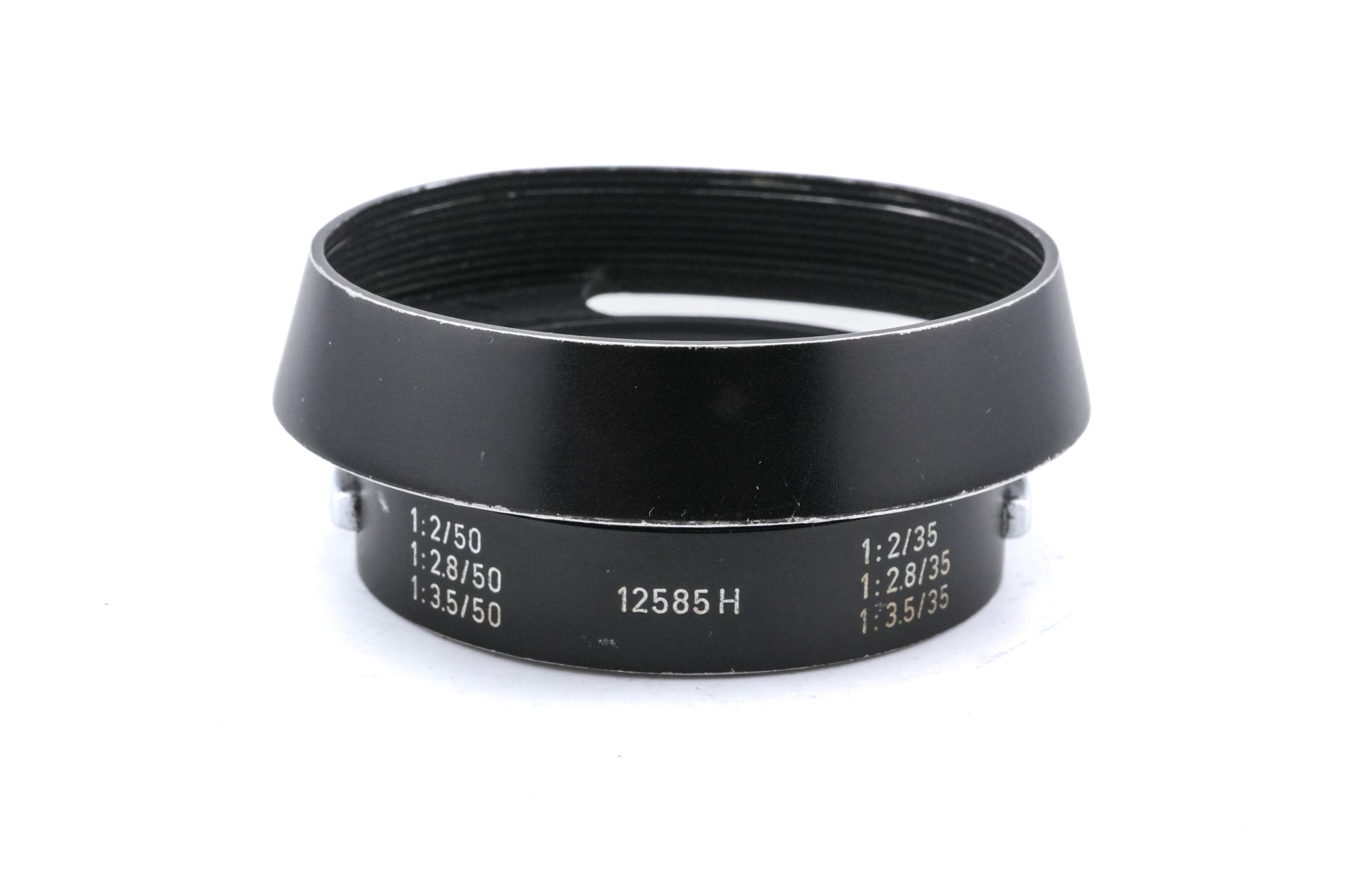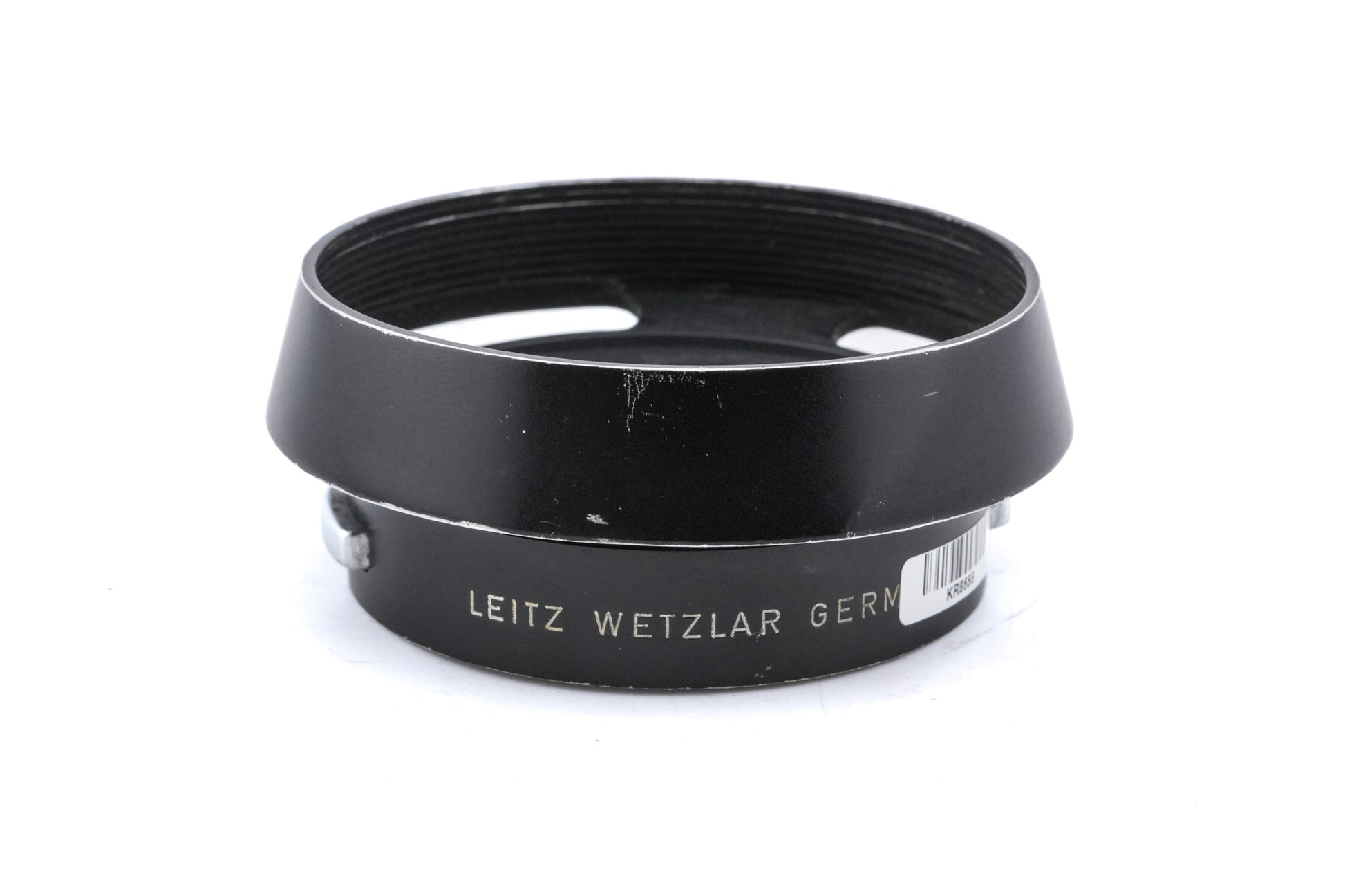 Lens hood made for M-mount lenses by Leica. It's made specifically for 35mm and 50mm lenses with apertures between f2 and f3.5 and has vents so it won't block the viewfinder. Metal body available in black.