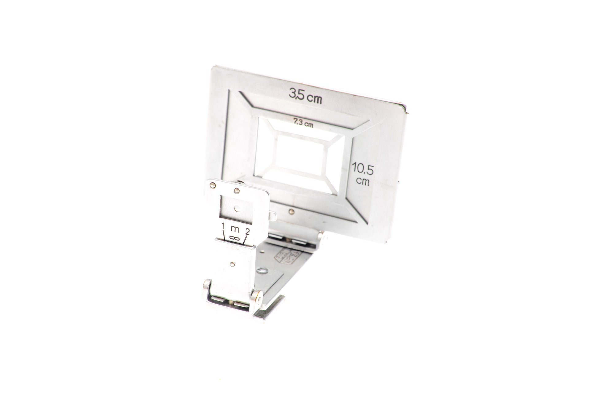 Universal sports viewfinder made by Leica. Has frame lines for 35, 50, 73, and 90mm. Came with a separate mask (RASUK) with additional frame lines for 105 and 135mm. Folds for easy carry. Metal body available in black and chrome.