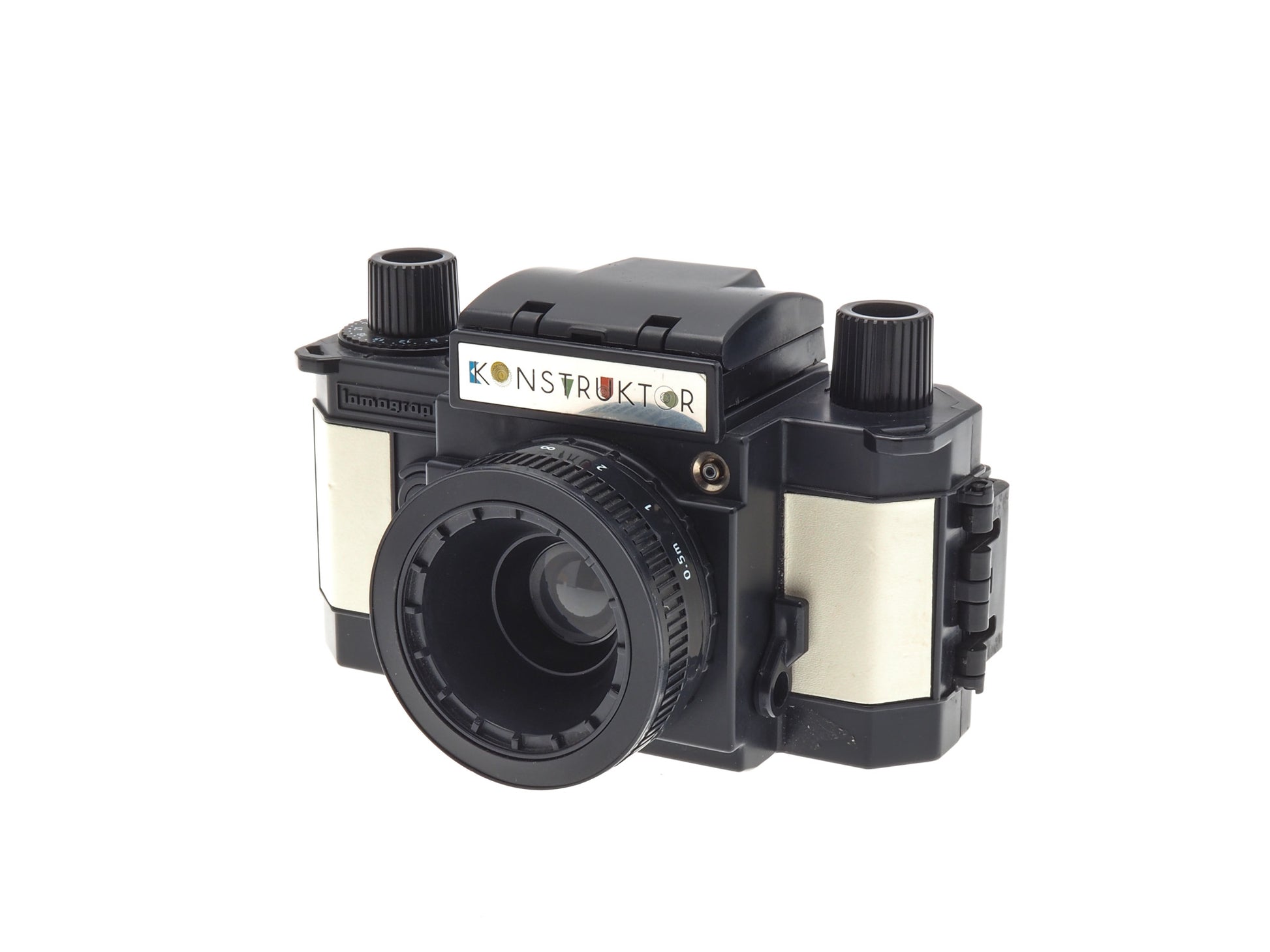 35mm SLR camera by Lomography. A Do-It-Yourself-style camera designed to be constructed at home. Has a waist-level viewfinder and flash sync port. Plastic body available in many color variations.