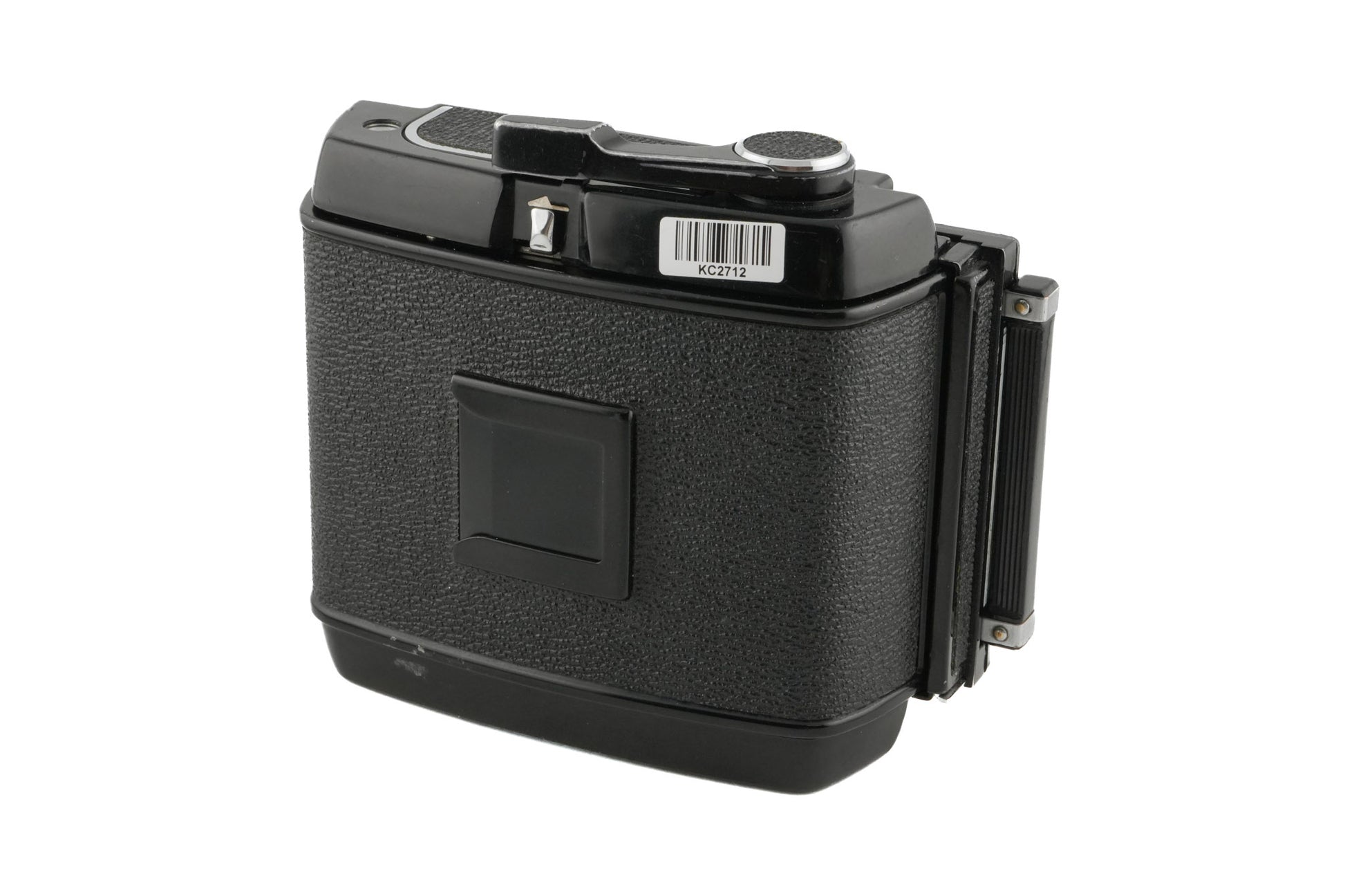 6x7 120-roll film magazine made for the RB67 camera, introduced by Mamiya, released in 1970. Fits 10 6x7 negatives on one roll of 120 film. Plastic and metal body available in black.