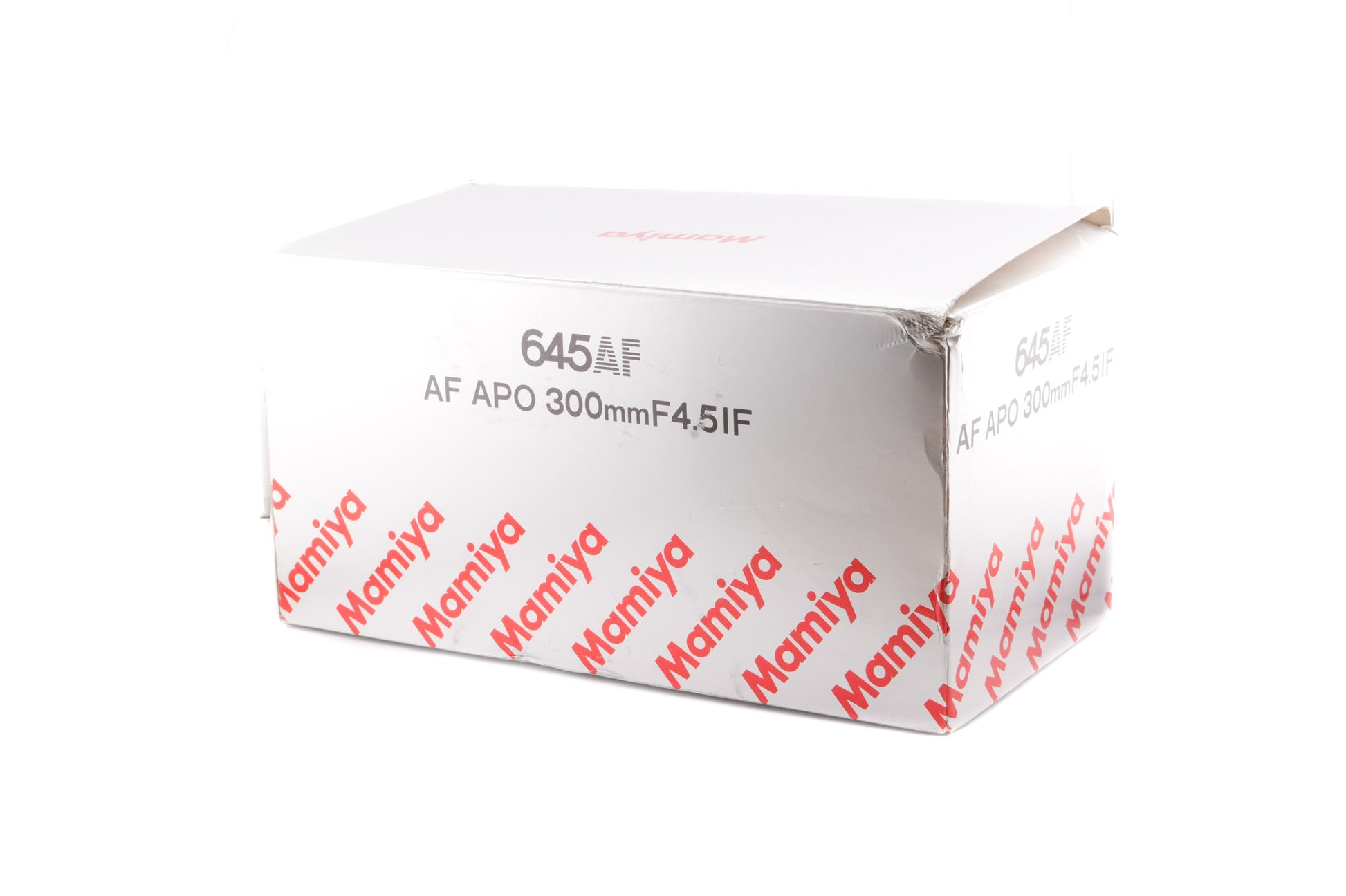 Autofocus telephoto lens made for 645AF mount 120/digital SLRs by Mamiya. It gives the equivalent field of view to a 186mm lens on full frame/35mm. It uses apochromatic (APO) glass elements to improve image quality. Metal/plastic body available in beige.