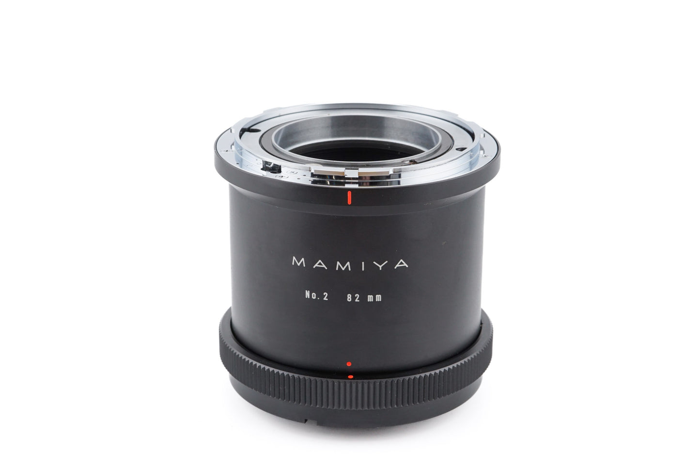 82mm extension tube made by Mamiya for their RB67 120 SLRs. Enhances close focus ability at the cost of some light transmission, but still allows the body to trigger the lens' leaf shutter. Metal body available in black.