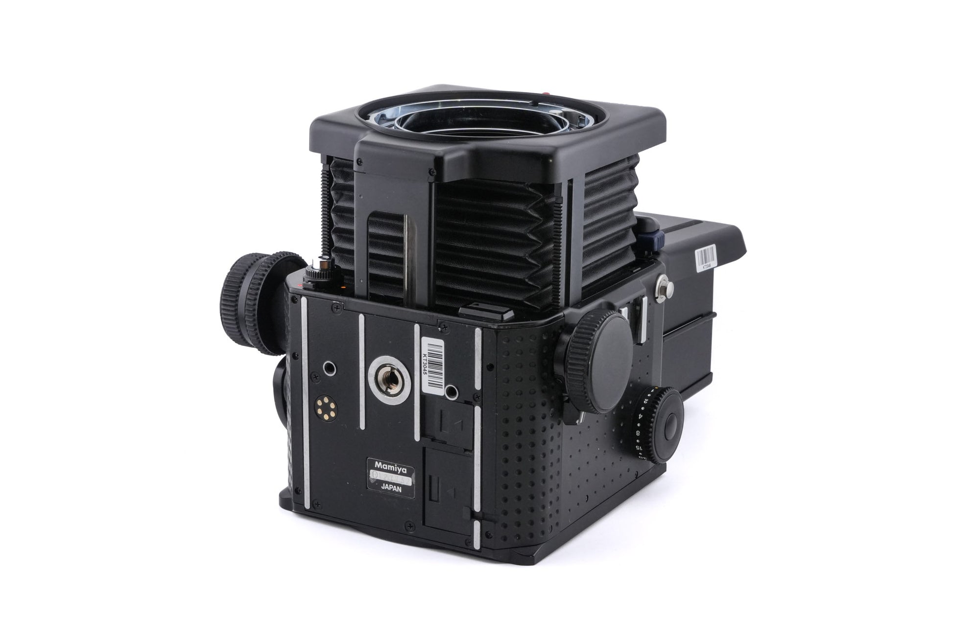 Manual focus RZ67 mount 6x7 120 SLR camera released by Mamiya. Improvements over the original Pro include electronic upgrades, 0.5EV shutter increments, and a fine focusing knob. Metal and plastic body available in black.