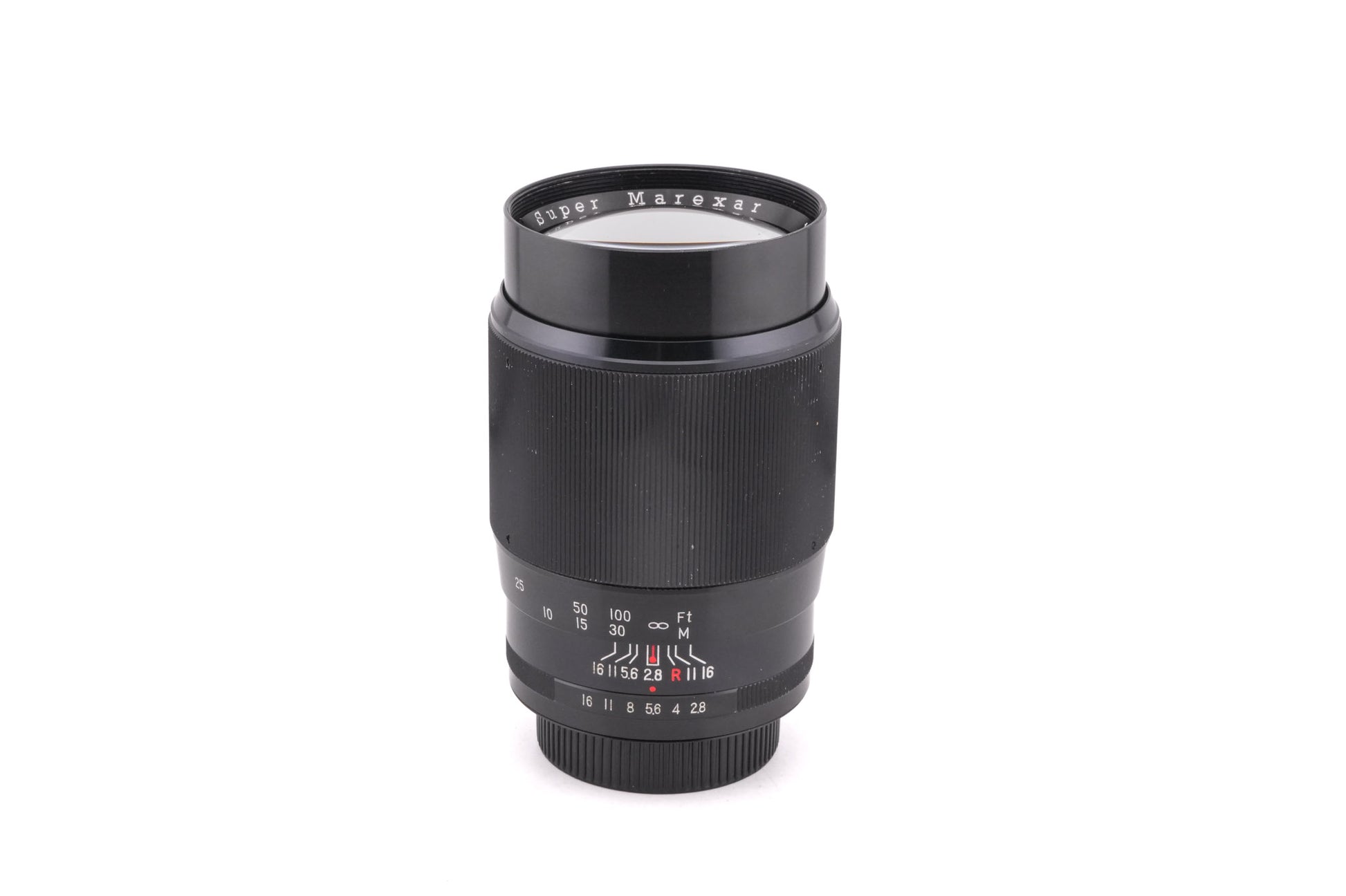 Manual focus telephoto lens made for M42-screw mount 35mm SLR cameras introduced by Marexar. Metal body available in black.