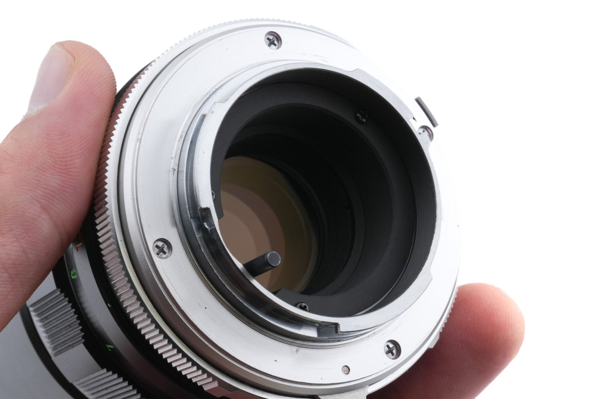 Manual focus telephoto lens made for MD-mount 35mm SLR cameras introduced by Minolta in 1966. A few different versions were made. Some versions have a built-in lens hood. Metal body available in black.