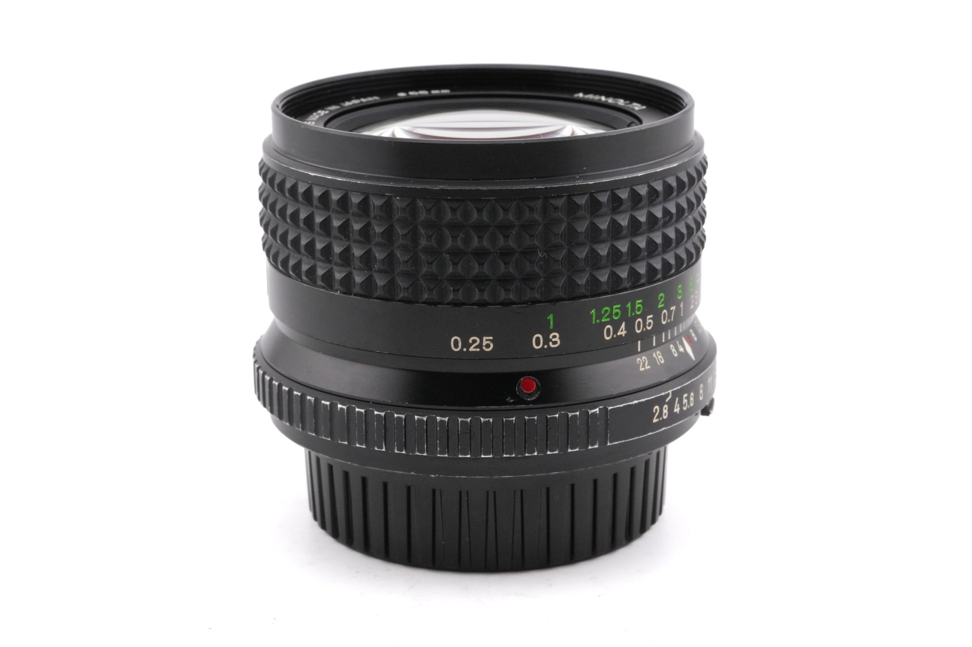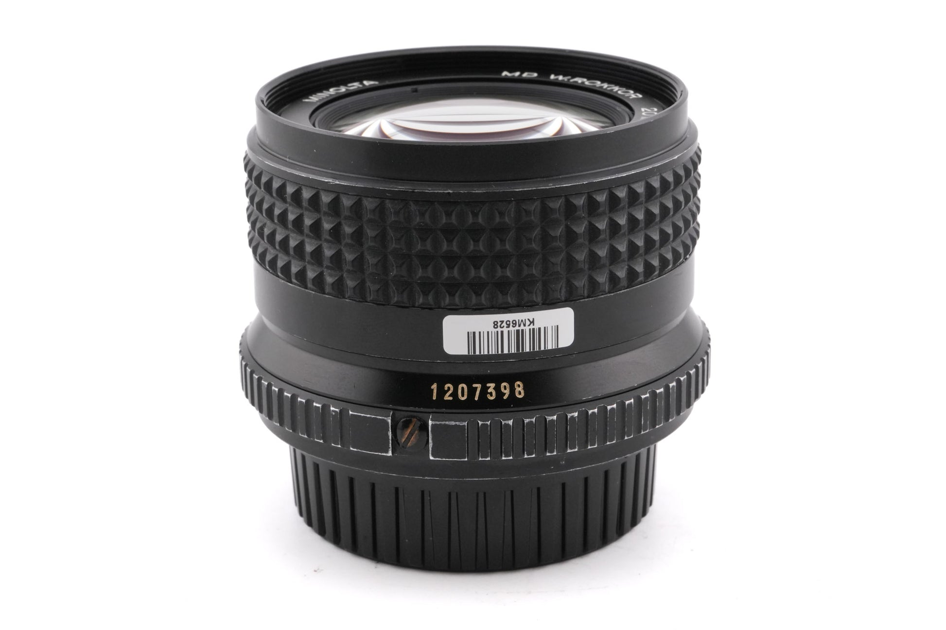 Manual focus wide-angle lens made for MD-mount 35mm SLRs by Minolta starting in 1981. Metal body available in black.