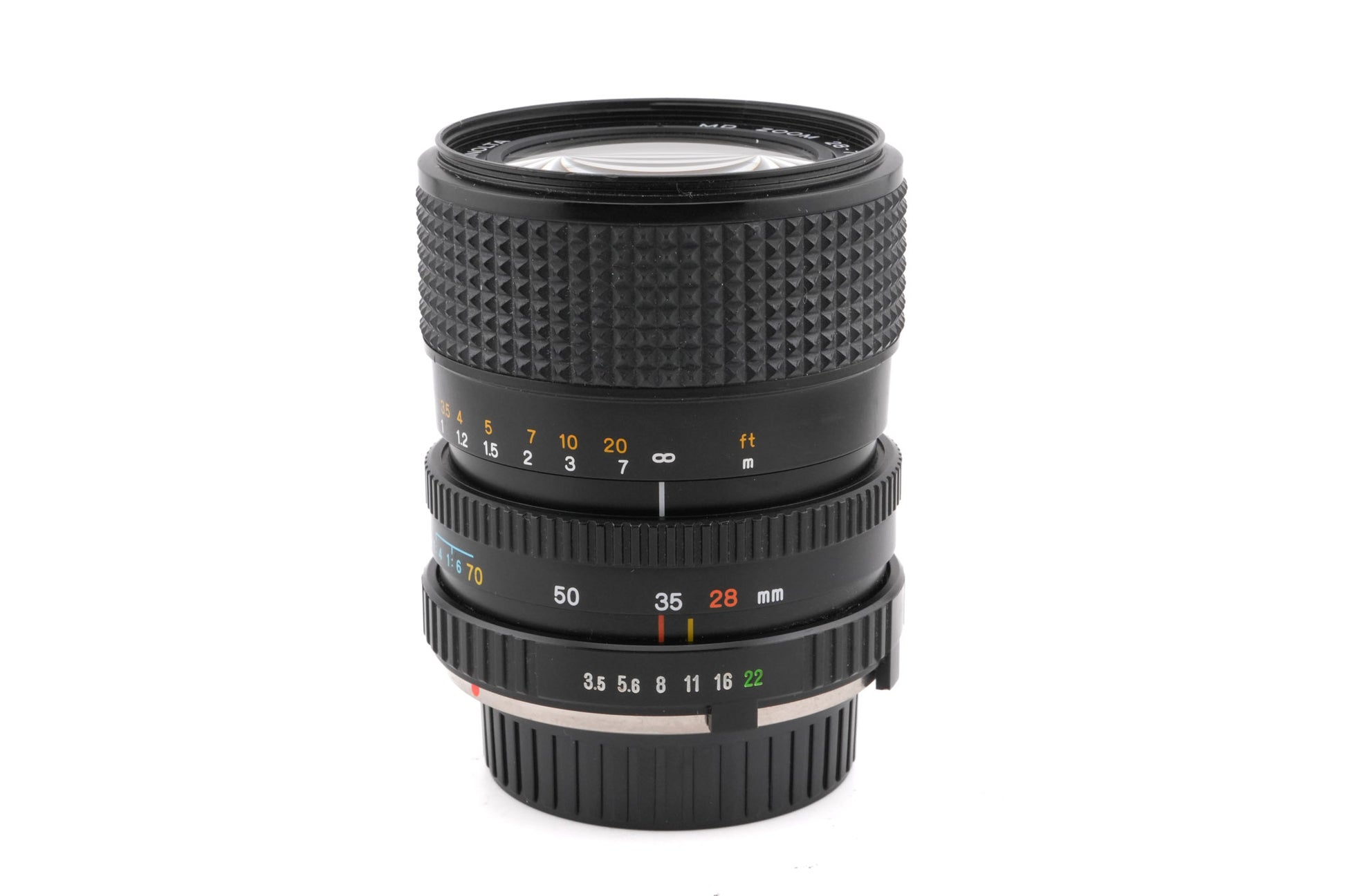 - Minolta 28-70mm f3.5-4.8 MD Zoom (8 elements, 8 groups)