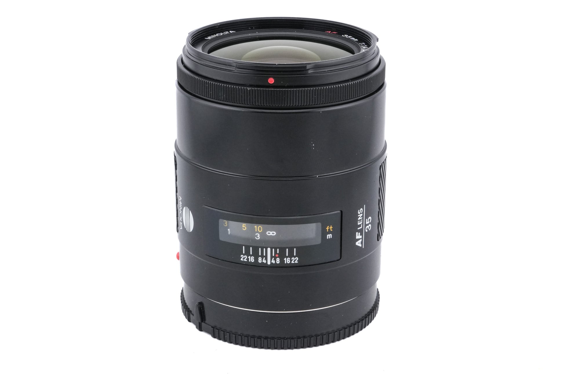 Autofocus wide normal lens made for AF mount 35mm SLRs by Minolta. This is the first version of this lens, with styling similar to the Minolta 7000 and other late-80s AF cameras. Plastic/metal body available in black.