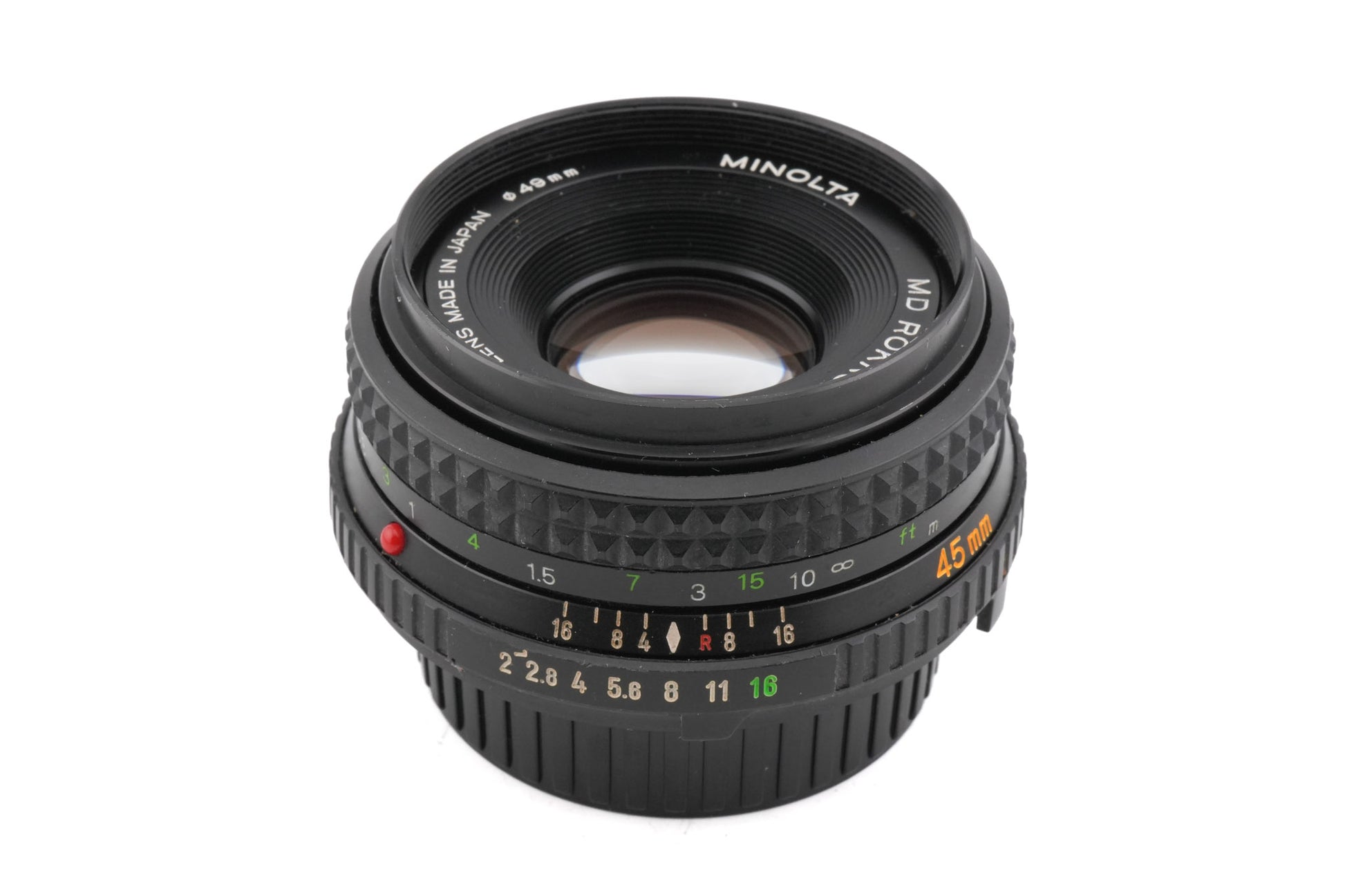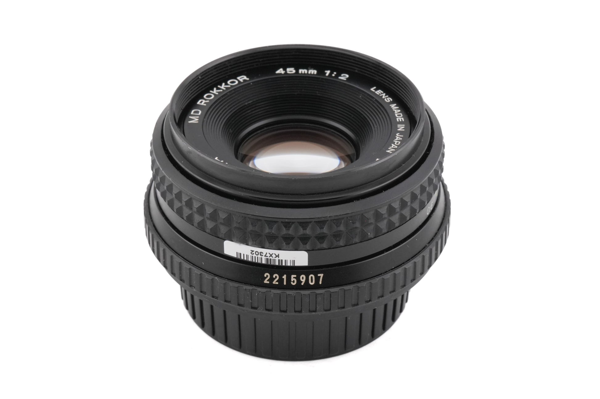 - Minolta 45mm f2 MD Rokkor (6 elements, 5 groups)