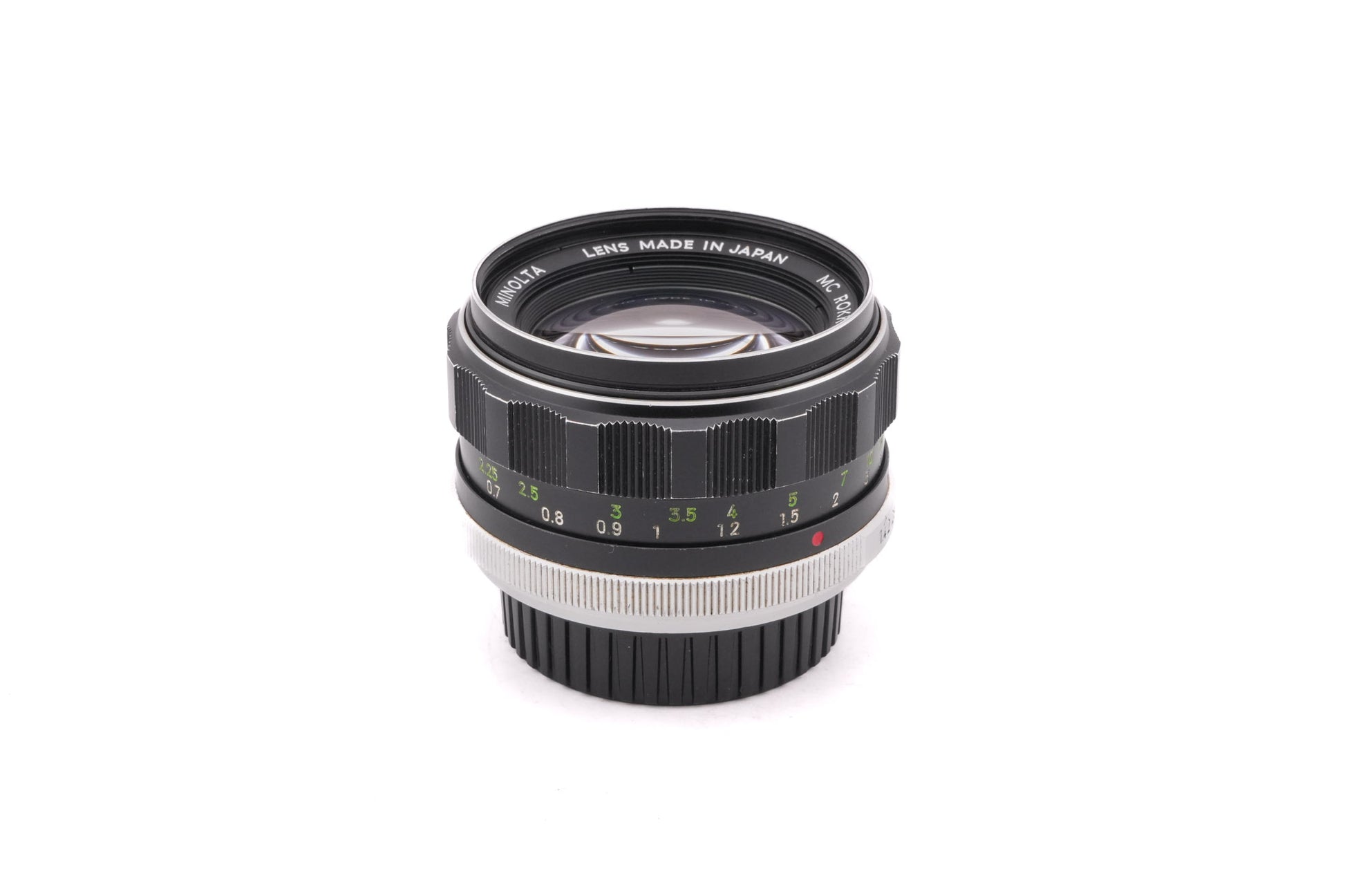 Manual focus normal lens made for MD-mount 35mm SLRs by Minolta. Metal body available in silver & black.