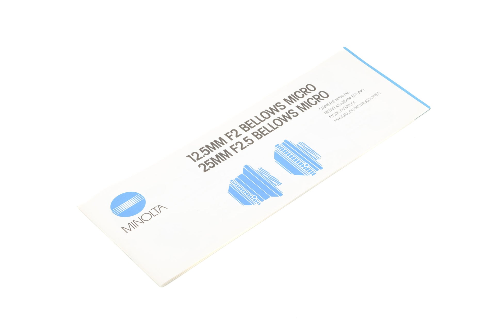 This Minolta Auto Bellows Micro Lens (12.5mm f2/25mm f2.5) Instructions includes: