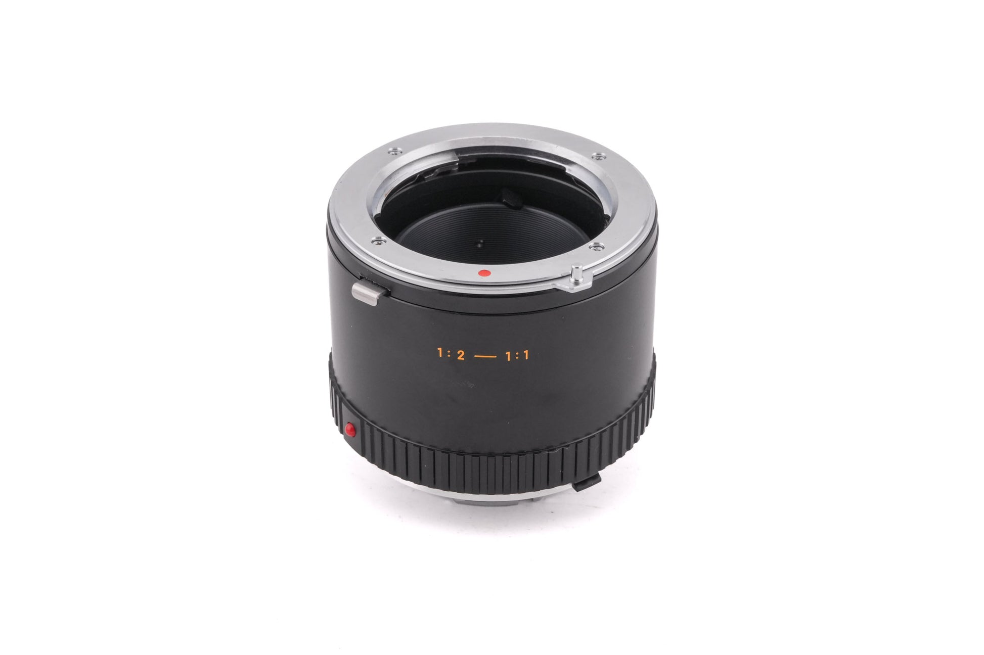 Extension tube made for the Minolta MC Macro 100mm f3.5 lens introduced by Minolta. It's meant to make certain lenses go from 1:2 macro reproduction to 1:1 life-size reproduction. Metal body available in black.