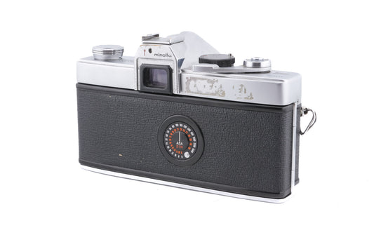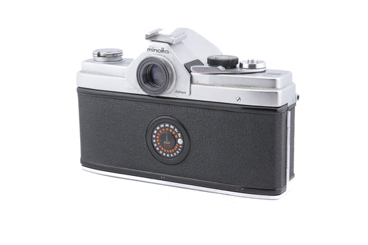 Manual focus 35mm MD-mount mechanical film SLR released by Minolta in 1959. Features mirror lock-up and a self-timer. Metal body available in silver and black.