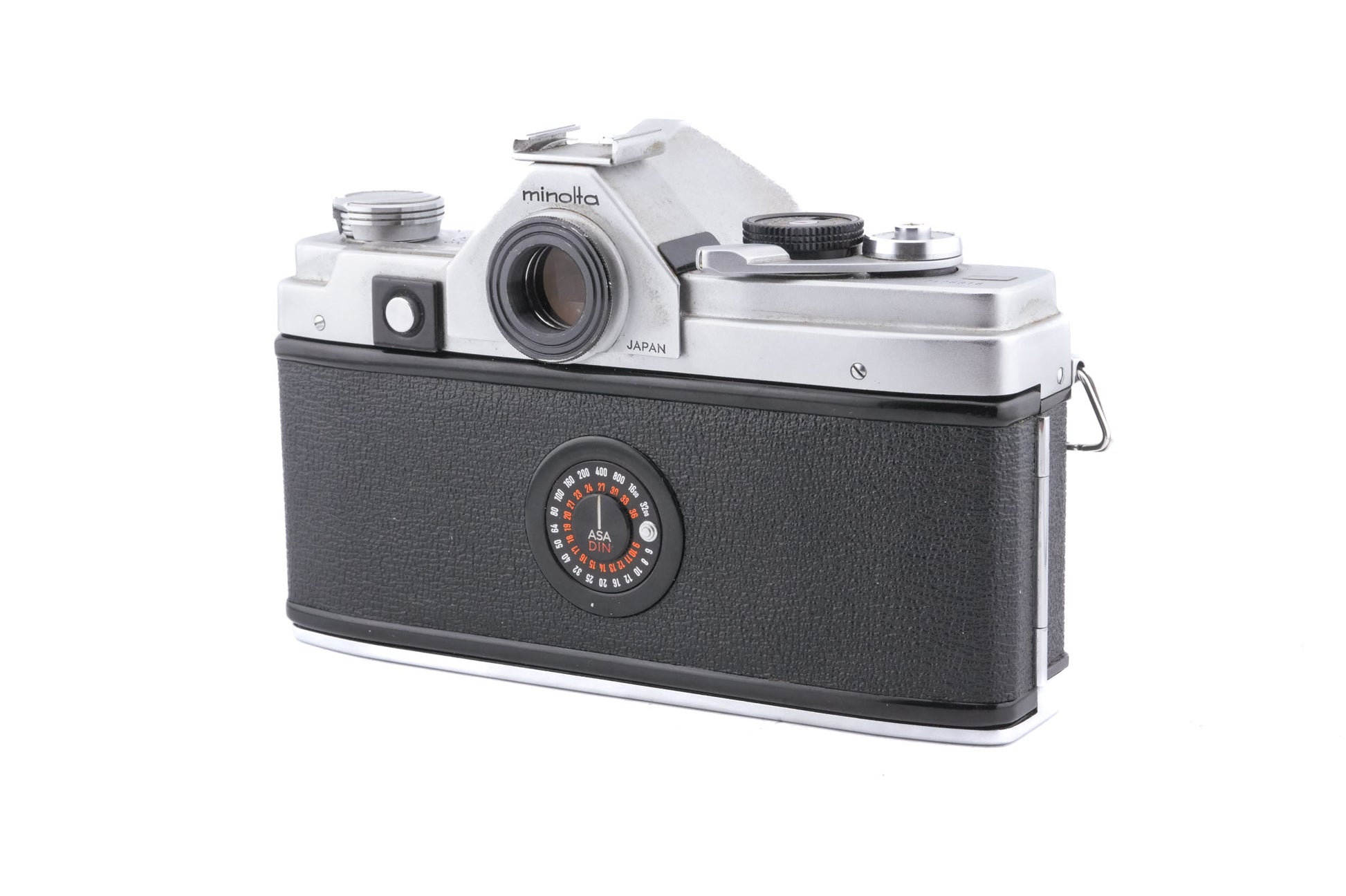 Manual focus MD mount 35mm SLR released by Minolta in 1962. This was the first 35mm SLR to feature a battery-operated light meter. Metal body available in black & silver.