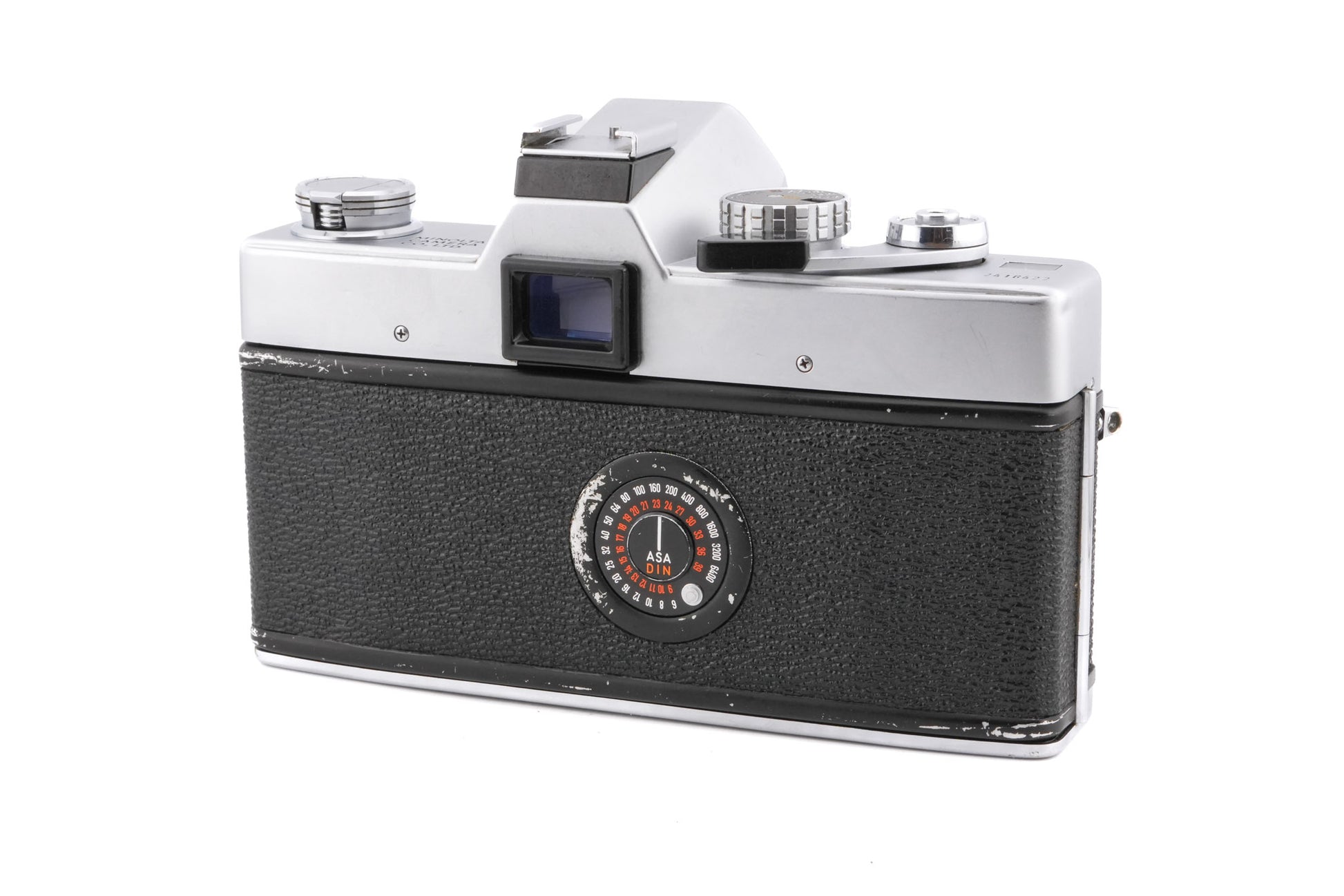 Manual focus 35mm MD-mount SLR camera released by Minolta in 1966. The shutter and advance mechanisms are mechanical, meaning they function without batteries. The PX625 battery only powers the exposure meter. It was the first camera to feature Minolta's CLC two-cell evaluative metering. It also added open-aperture metering and a TTL light meter compared to previous Minolta cameras. Metal body available in black & silver.