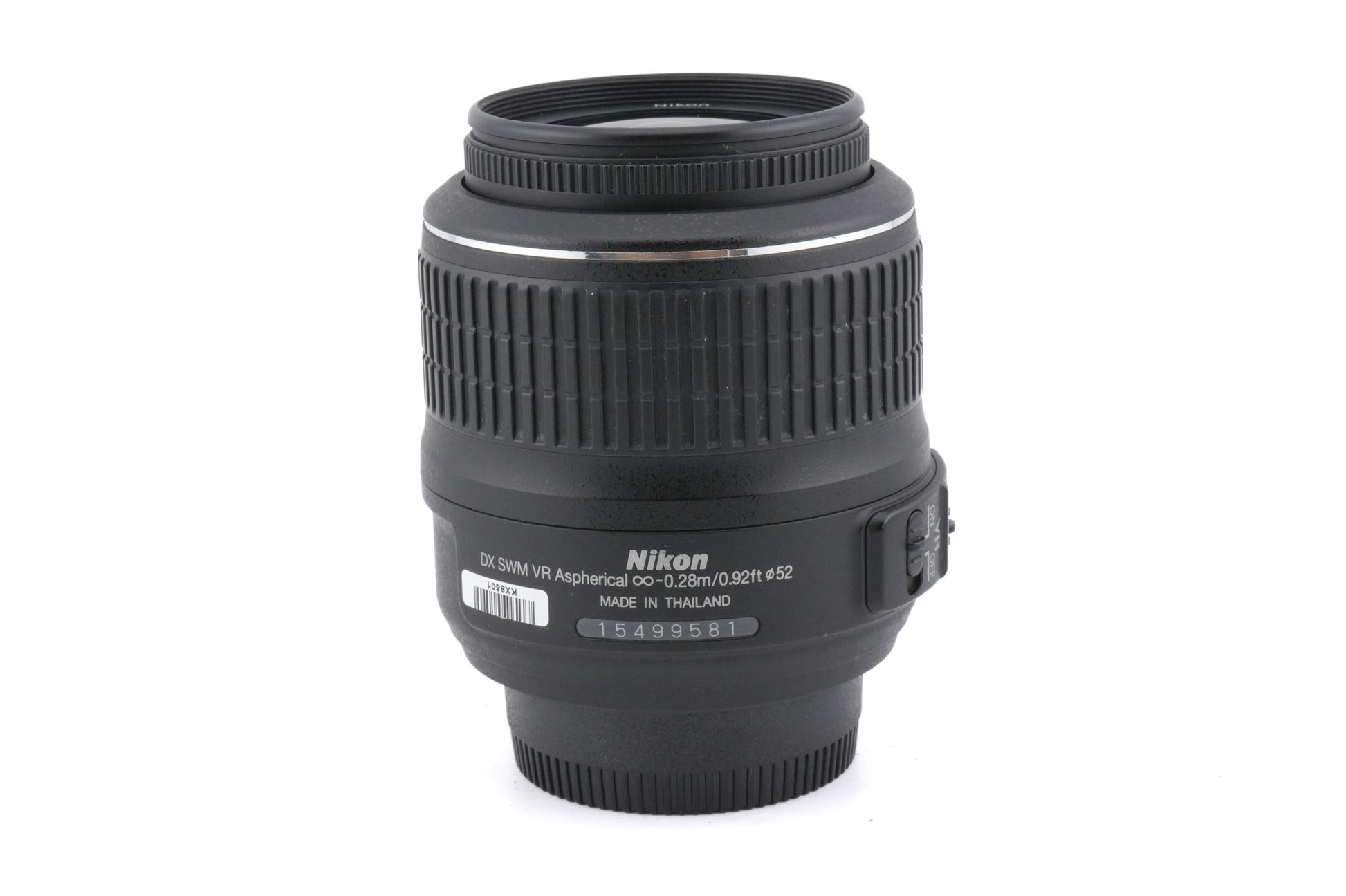 Autofocus normal zoom lens made for DX-mount DSLRs by Nikon. The lens has Vibration Reduction (VR) for more stable shots in low-light conditions. Plastic body available in black.