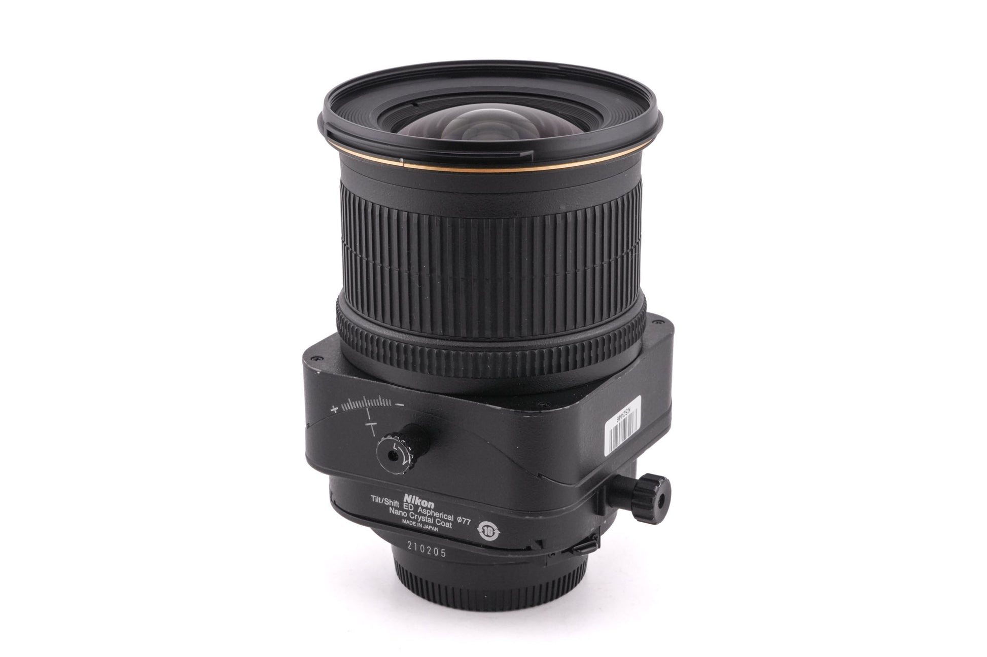 Manual focus wide-angle tilt-shift lens made for F mount SLRs by Nikon starting in 2008. It has tilt and shift mechanisms. Metal body available in black.