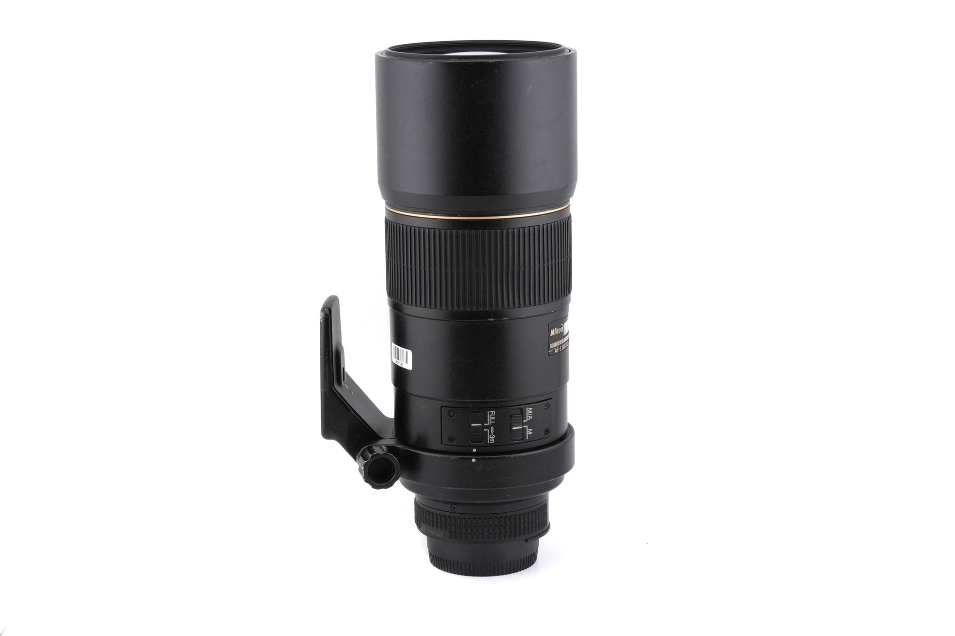 Autofocus telephoto lens made for F-mount SLRs by Nikon. The autofocus requires a body with a built-in screw focus motor. It contains extra-low dispersion (ED) elements to reduce chromatic aberrations. It also has a built-in tripod collar and a slot for drop-in filters. Metal body available in black.