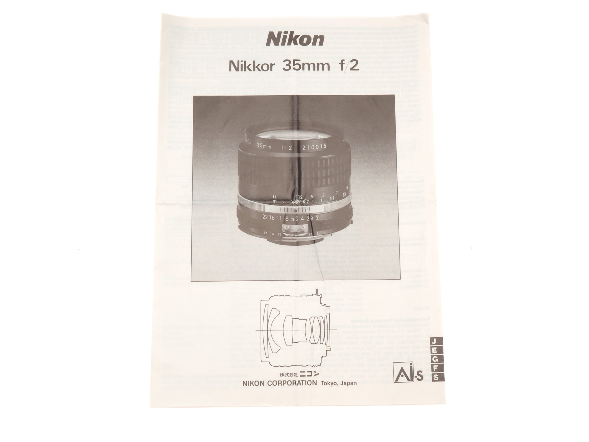 Nikon 35mm f/2 Nikkor Instructions - Accessory