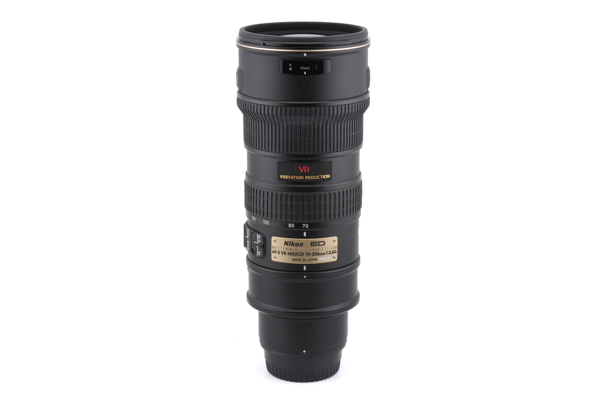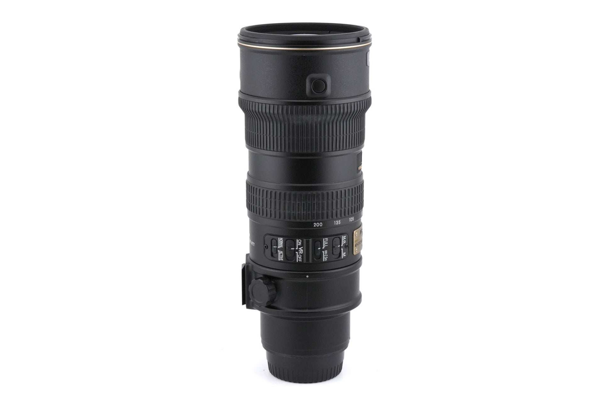 Autofocus telephoto zoom lens made for F-mount SLR cameras introduced by Nikon. It has built-in vibration reduction (VR). Metal body available in black.