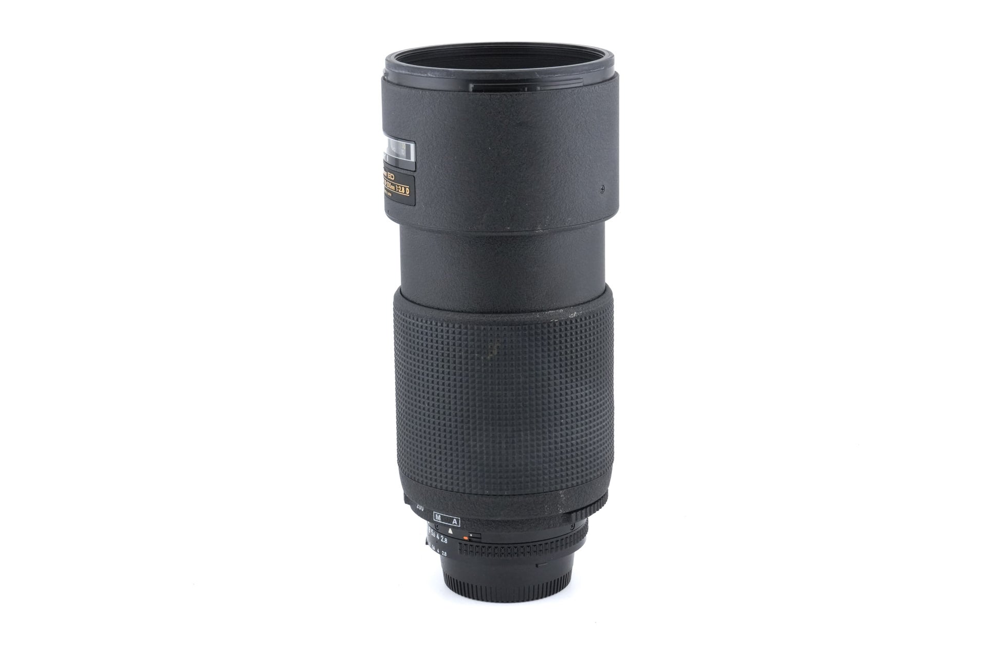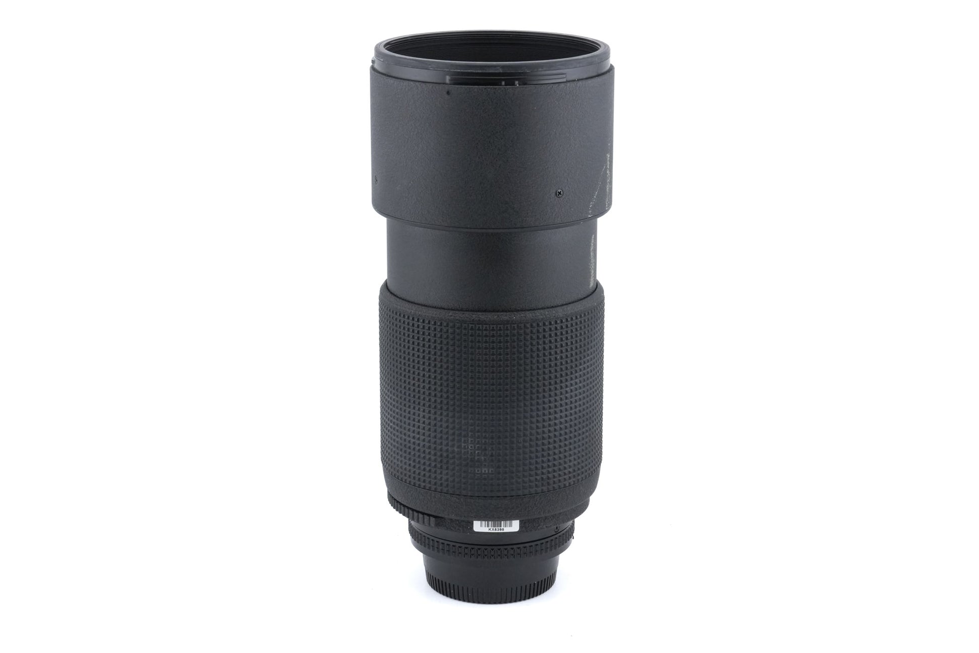 Autofocus telephoto lens made for F-mount SLRs by Nikon starting in 1997. This is the second version of the older lens (1993) with the same name. It has faster autofocus than the first version and uses a two-touch zoom design rather than the push/pull design of the first version. The optical structure has three ED (Extra-low Dispersion) elements. It has an aperture ring with an AI ridge and AI-S indent so it will work on most manual (excluding F, F2, and Nikkormats) Nikon bodies and will work with the advanced program modes of later models. Metal body available in black.
