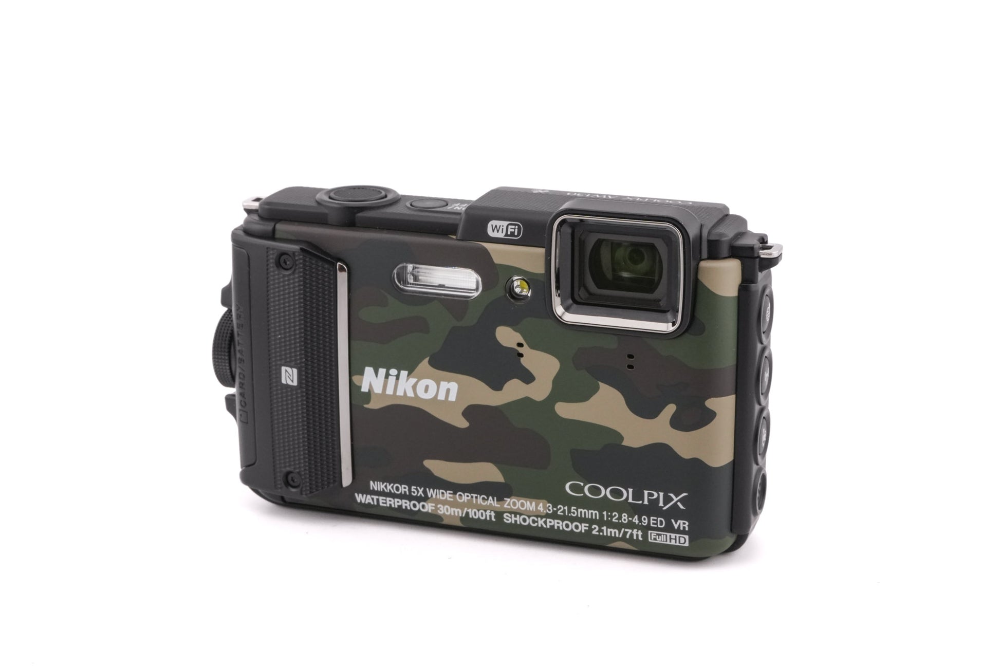 Autofocus rugged compact digital point-and-shoot camera introduced by Nikon in 2015. It has a 24 - 120mm equivalent focal length, a 3″ rear LCD, and records 1920 x 1080 video. It has a built-in flash and GPS. The body is environmentally sealed, waterproof, and shockproof. Metal and plastic body available in multiple colors.