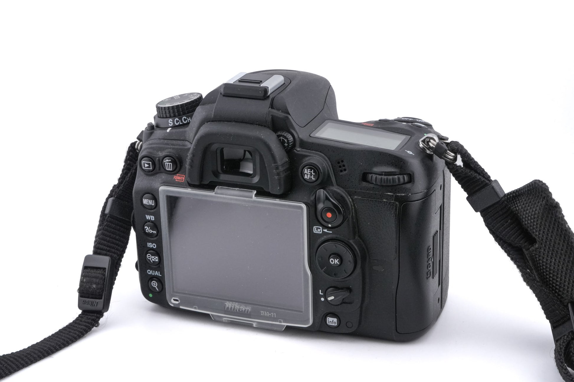 Autofocus DX-mount DSLR released by Nikon in 2010. This prosumer body was the high-end of Nikon's crop sensor lineup at the time. It has twin SD card slots and 1080p HD video recording with a mic jack for an external microphone. Magnesium alloy body available in black.