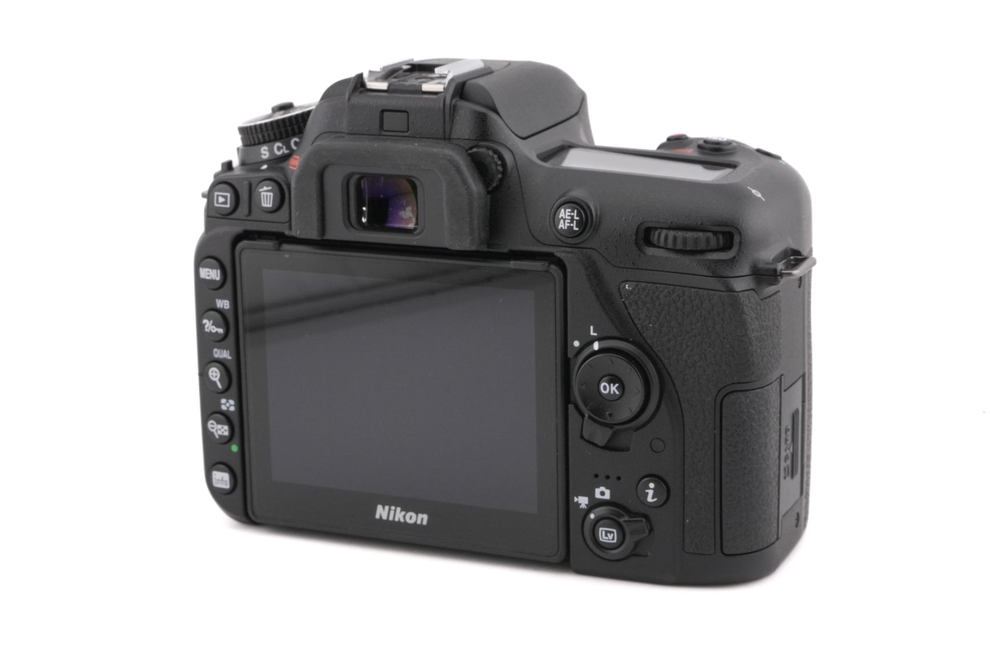 Autofocus APS-C F-mount DSLR camera released by Nikon in 2017. it is capable of 4K video. It has a 51-point AF system, a tilting touchscreen, and Bluetooth and WiFi capability. Metal and plastic body available in black.