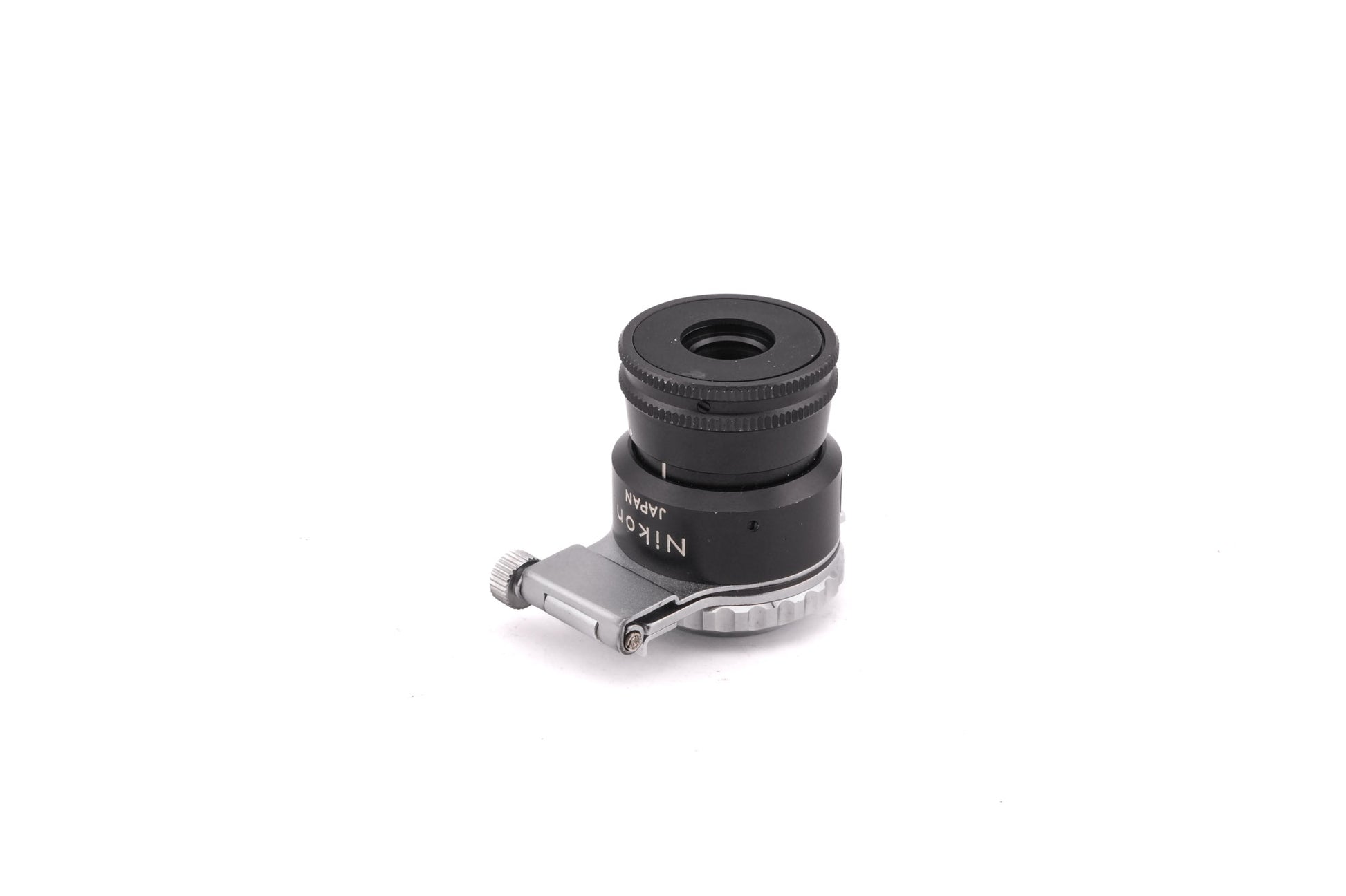 Eyepiece magnifier made by Nikon. It fits the Nikon F, F2, FE, FM series, FA, and Nikkormats. It provides 2x magnification and has dioptric correction from -5 to +1. Metal body available in black.