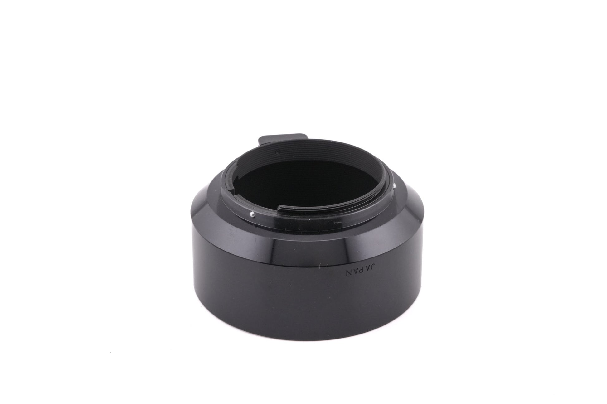 Lens hood made by Nikon for the 58mm f1.2 Noct and 105mm f2.8 AF Nikkor lens. Helps reduce lens flair by blocking unwanted stray light from hitting the lens. Metal body available in black.