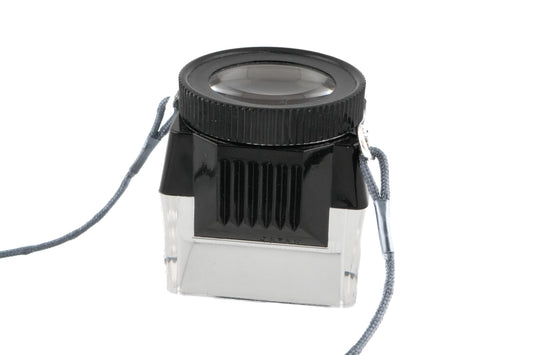 Magnifying loupe from Nikon, for getting up-close viewing. Has clear plastic bottom for ensuring flat, perpendicular viewing angles.