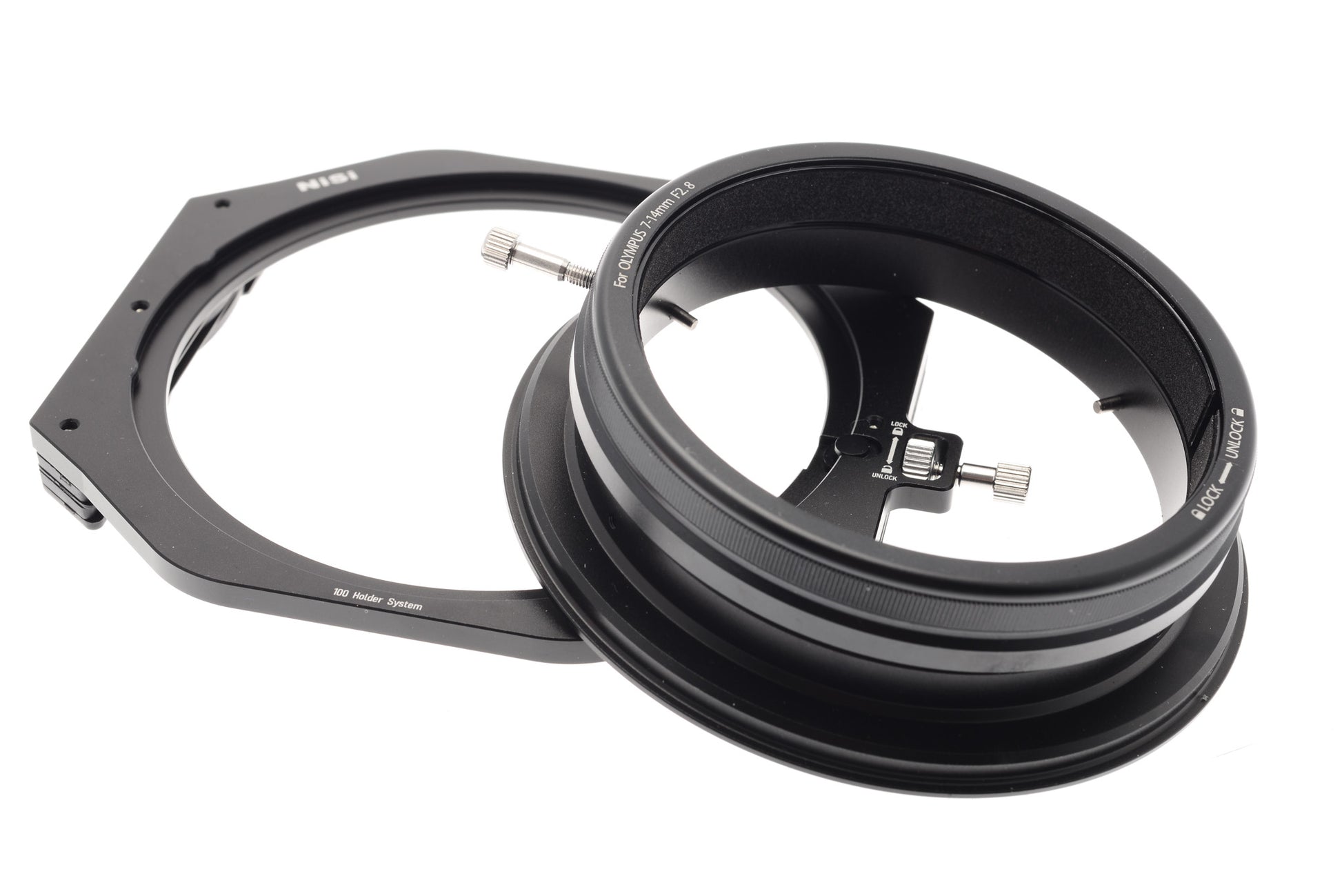 100mm filter holder specifically designed of the Olympus M.Zuiko 7-14mm f2.8 PRO wide-angle zoom lens. No vignetting with the holder in the upright position, some vignetting with the holder not upright.