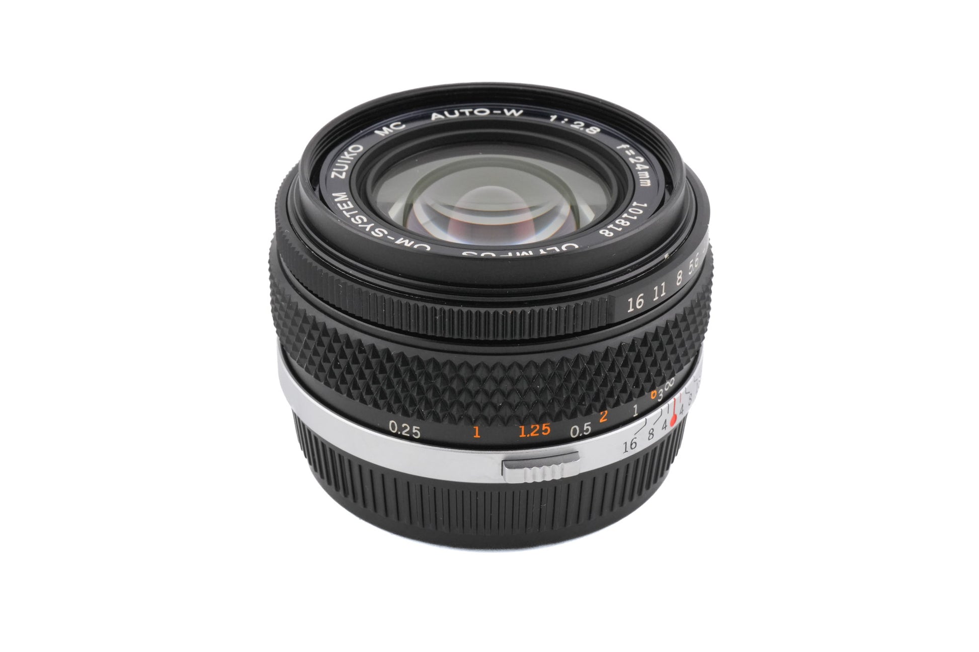 Manual focus wide-angle lens made for OM-mount 35mm SLRs by Olympus. Metal body available in black.